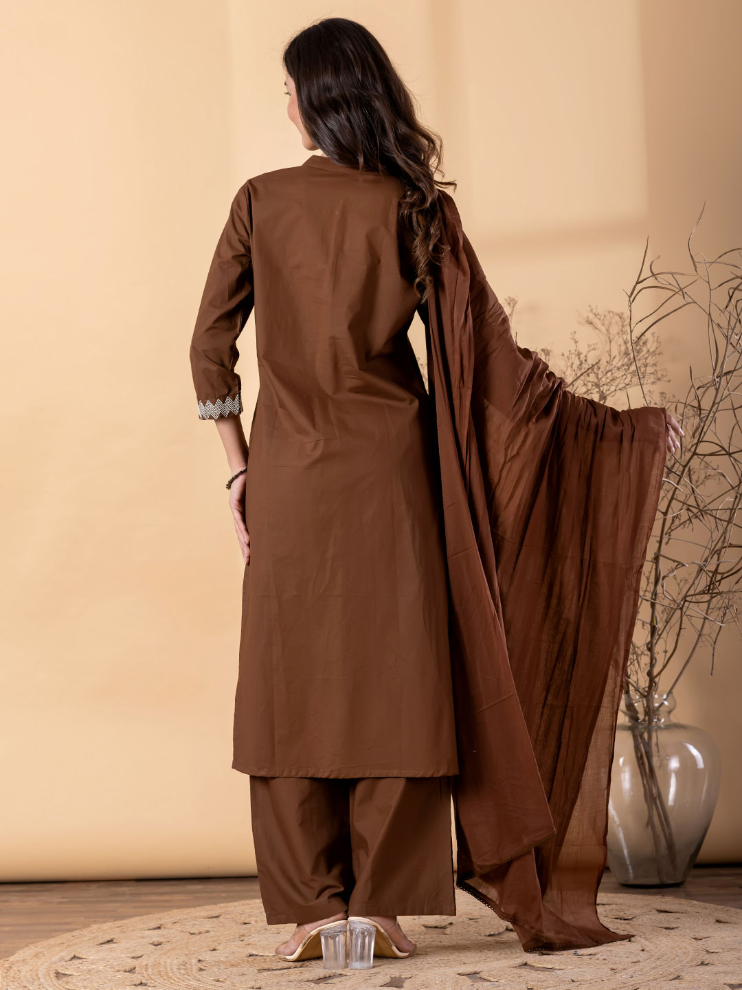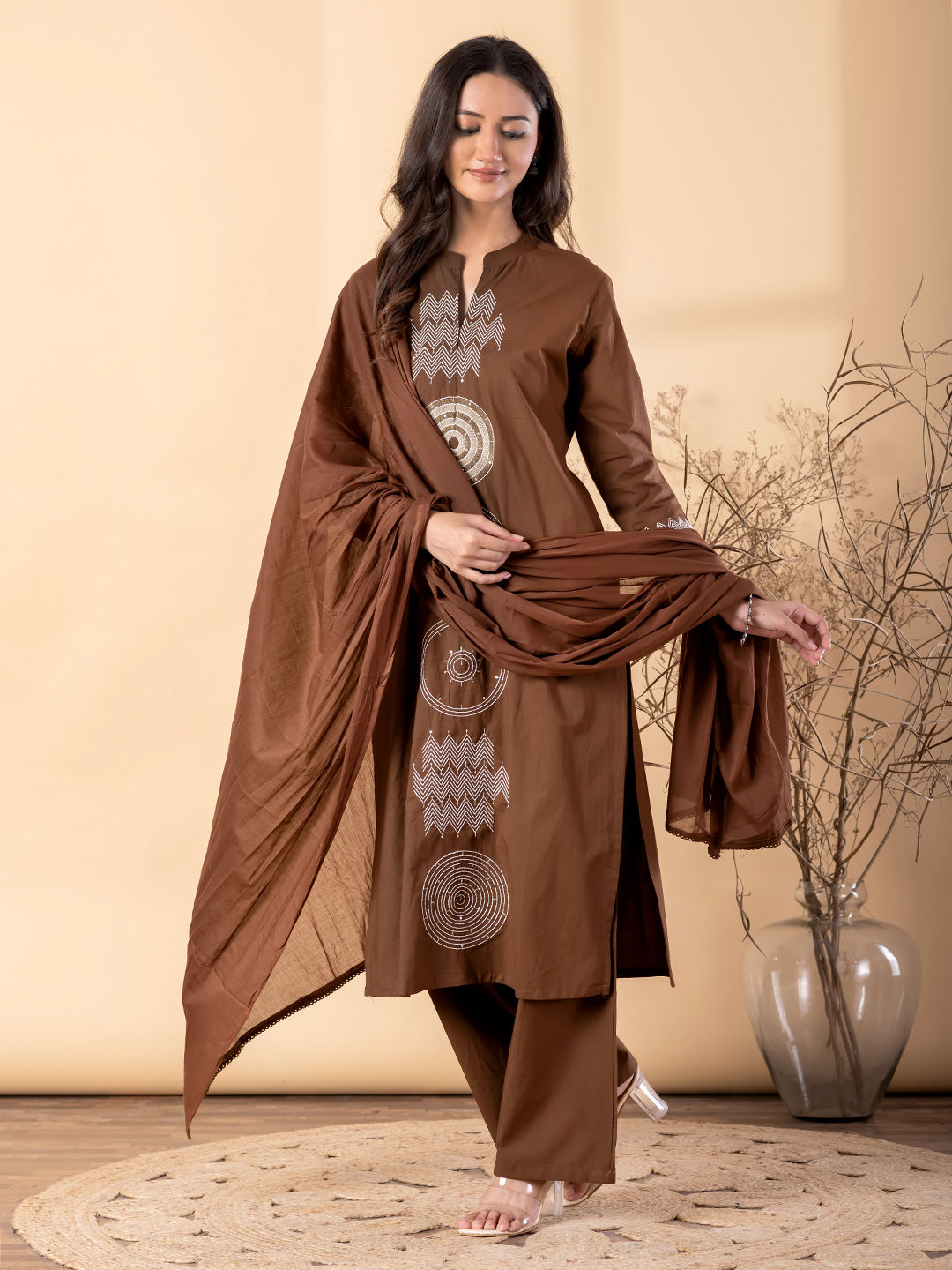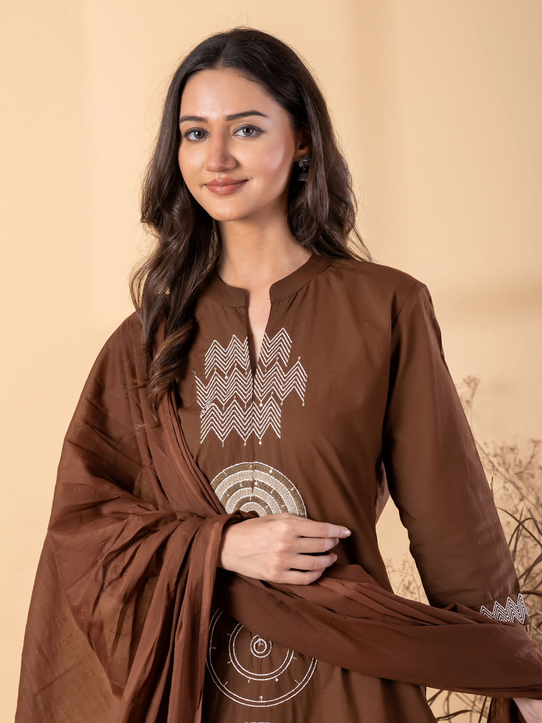 in Beige and Brown with Embroidered work