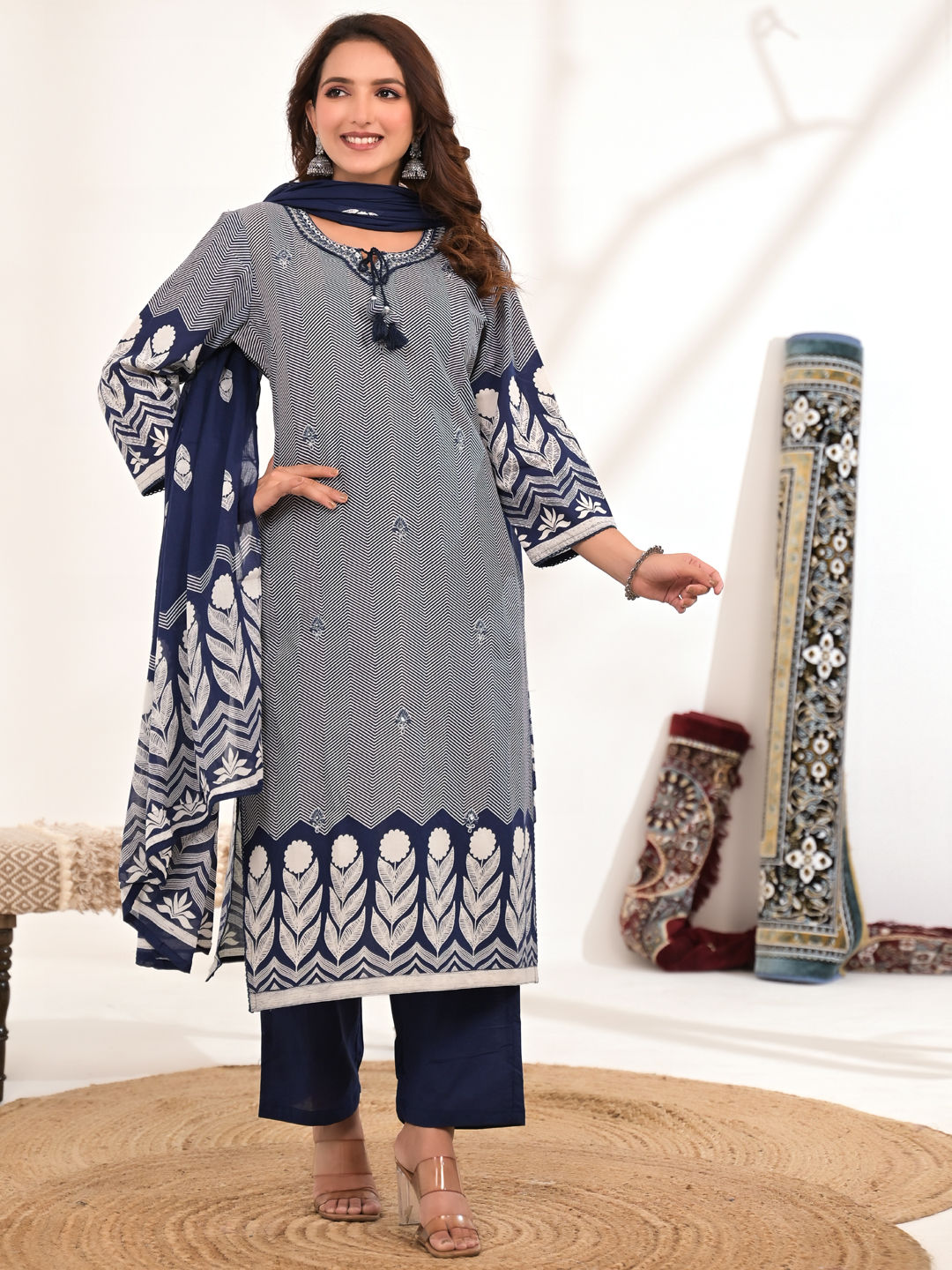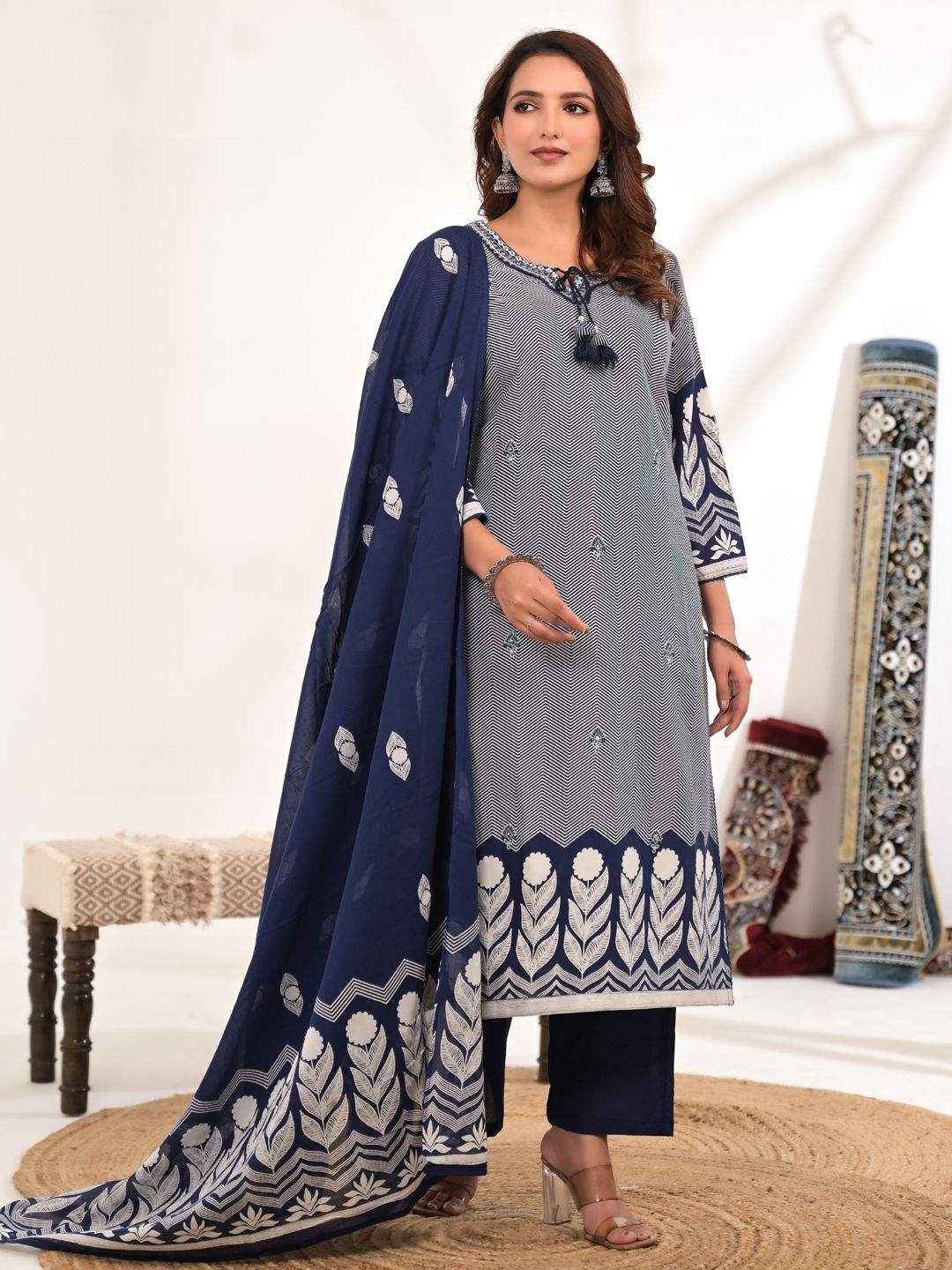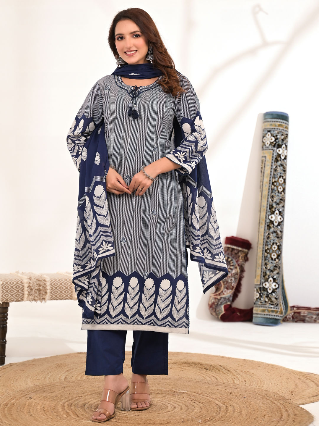 in Blue with Embroidered work