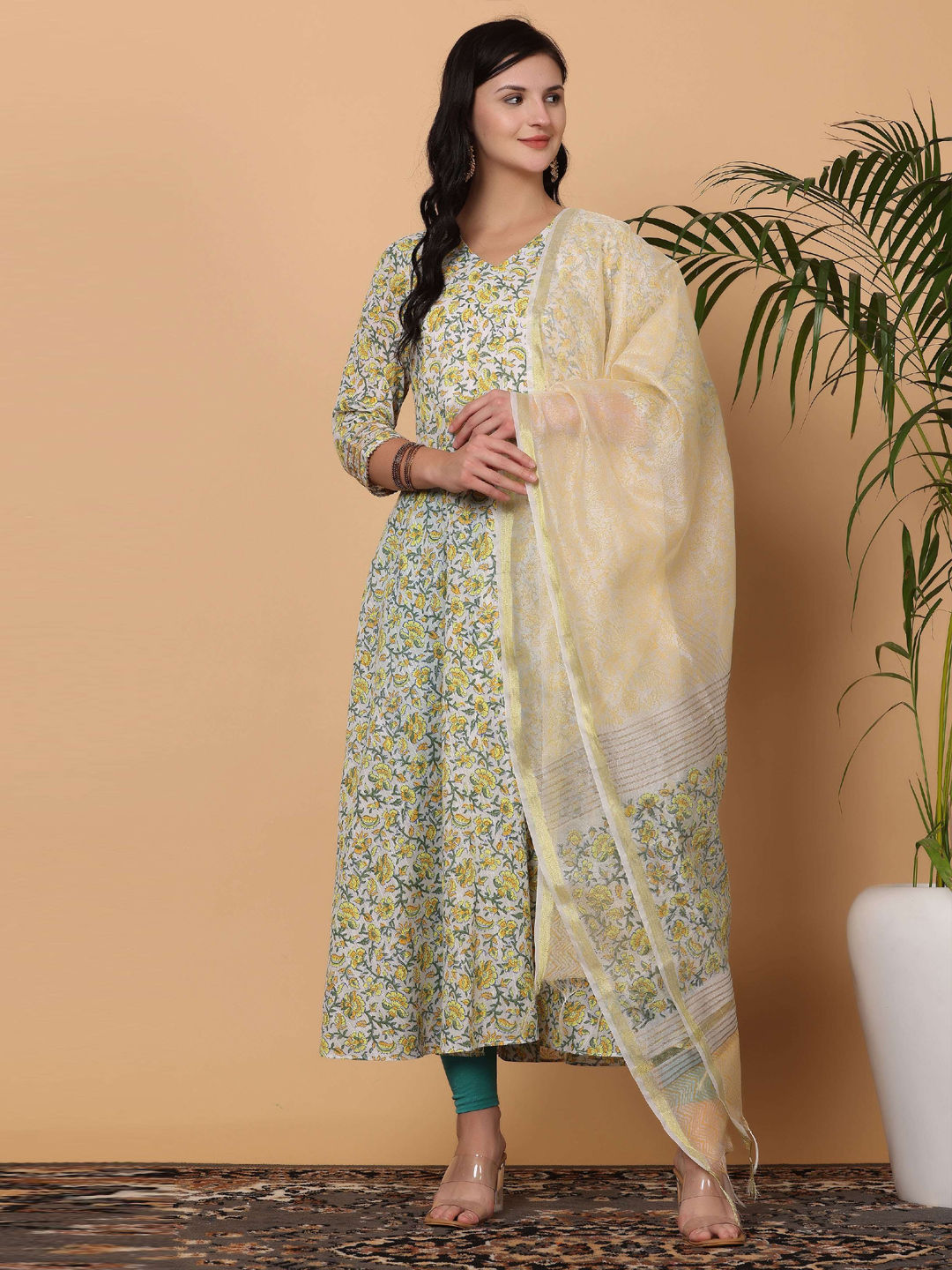 Green color Salwar Kameez in Cotton fabric with Block Print work