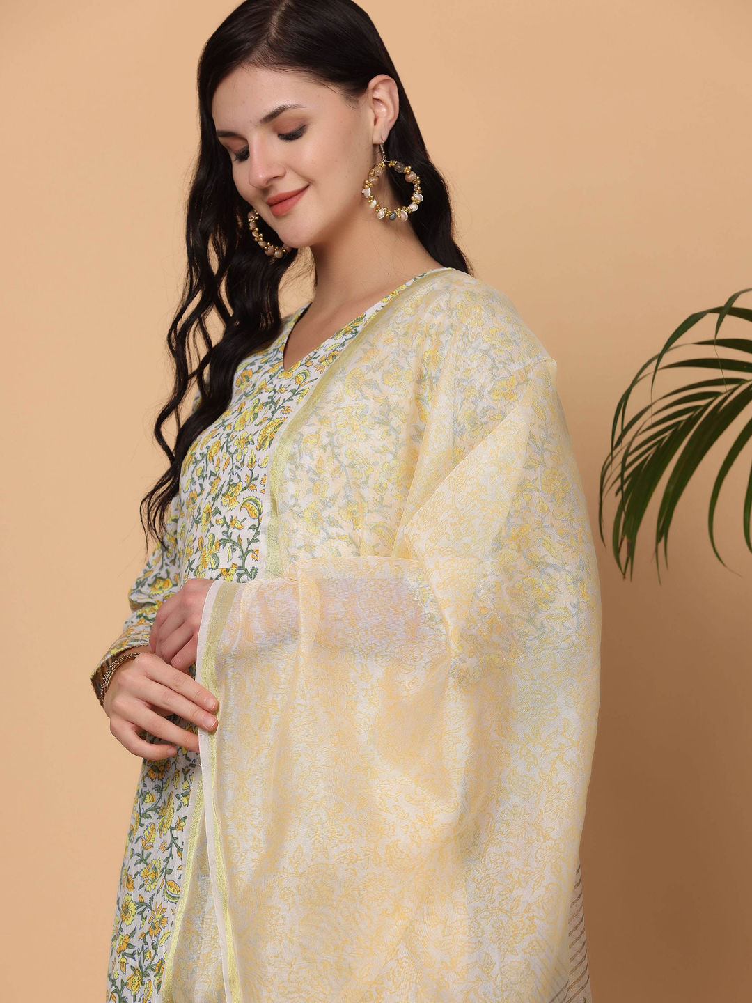 Cotton Summer Salwar Kameez in White and Off White with Block Print work