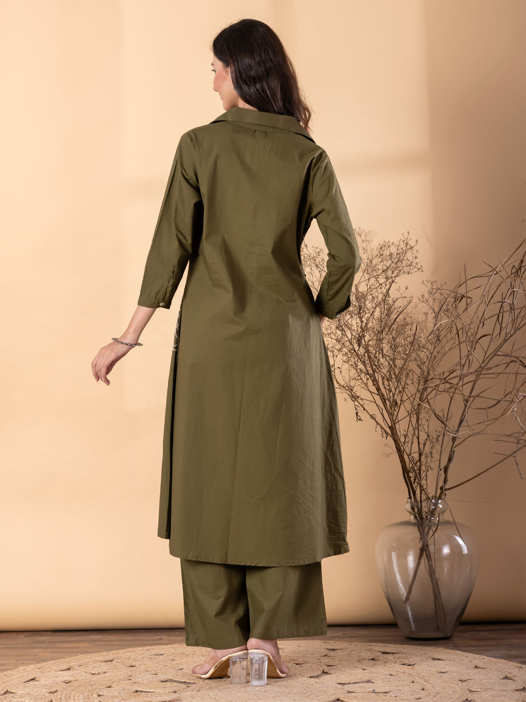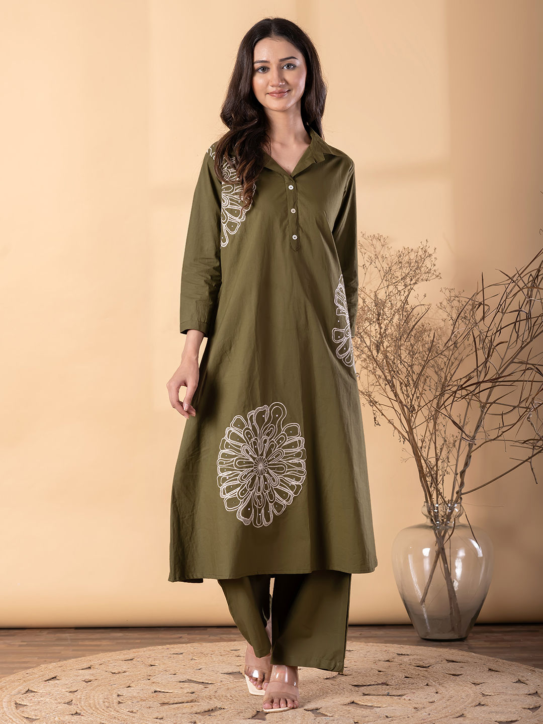 Green color Salwar Kameez in Cotton fabric with Embroidered, Resham, Thread work