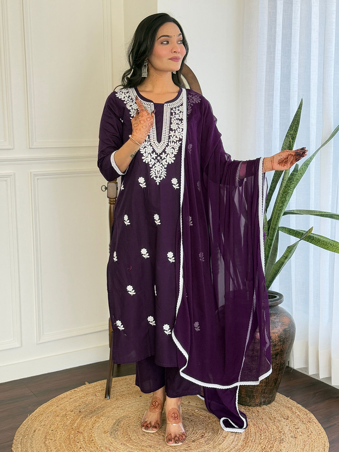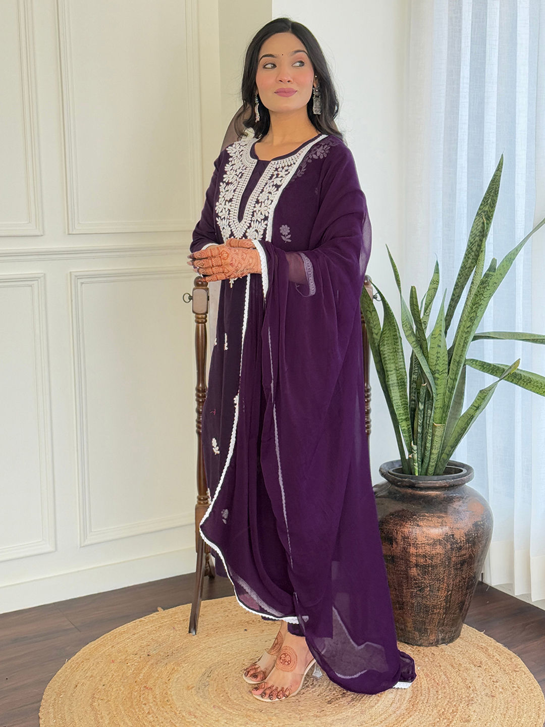 Rayon Reception Salwar Kameez in Purple and Violet with Embroidered work