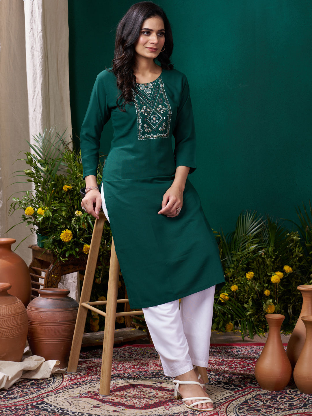 Green color Salwar Kameez in Cotton fabric with Embroidered, Mirror, Resham, Thread work