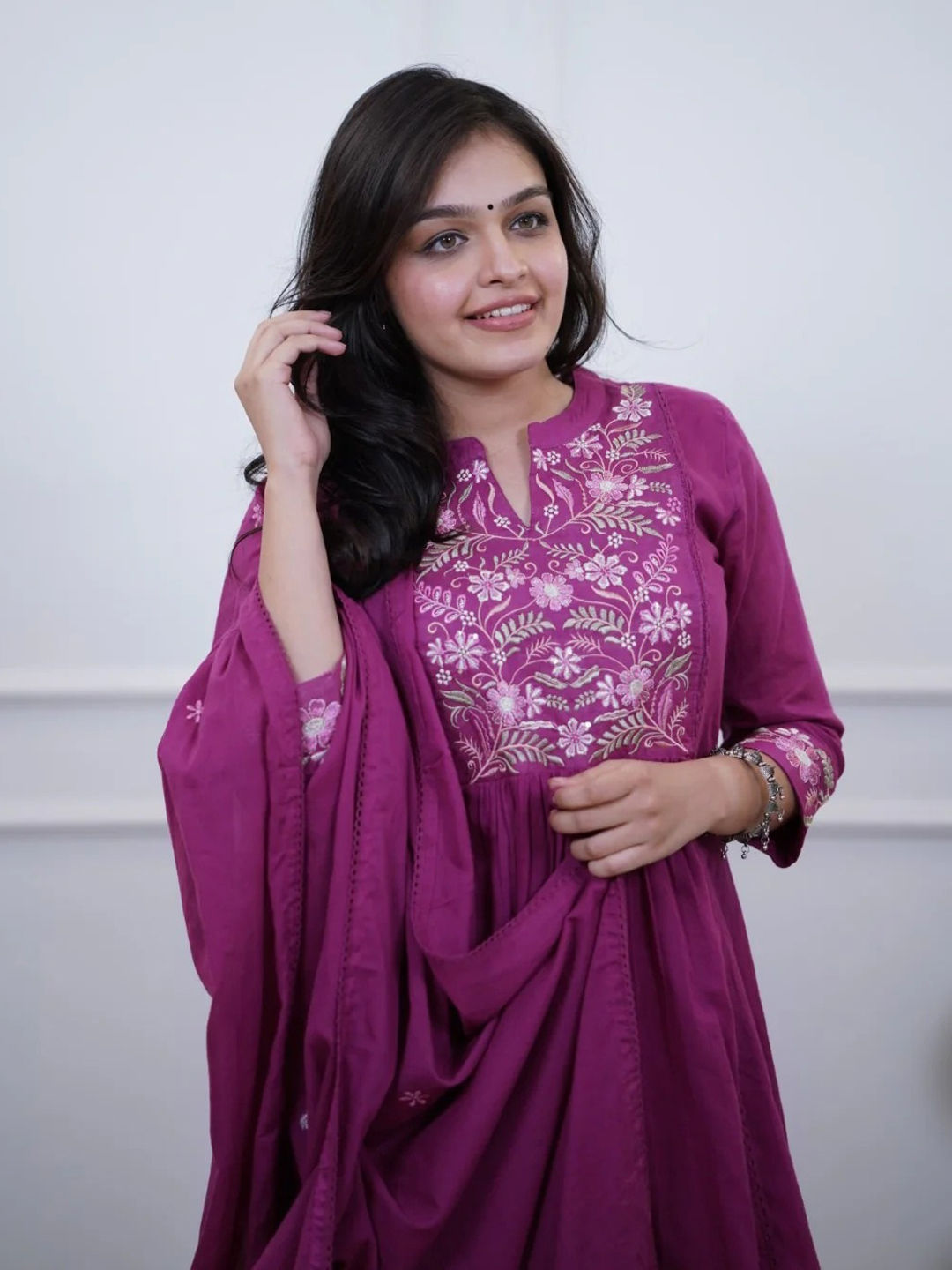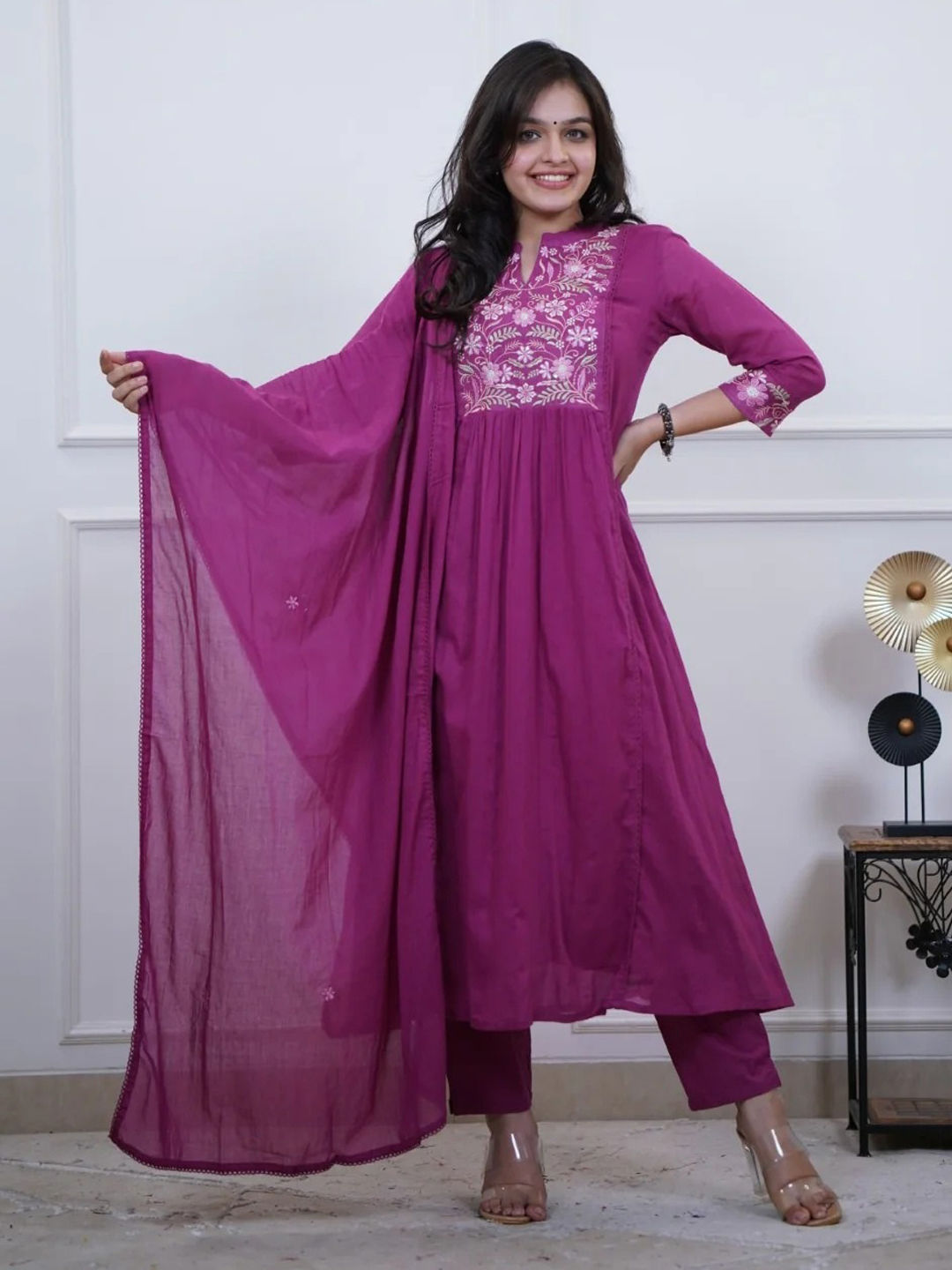 Cotton Festive Salwar Kameez in Purple and Violet with Embroidered work
