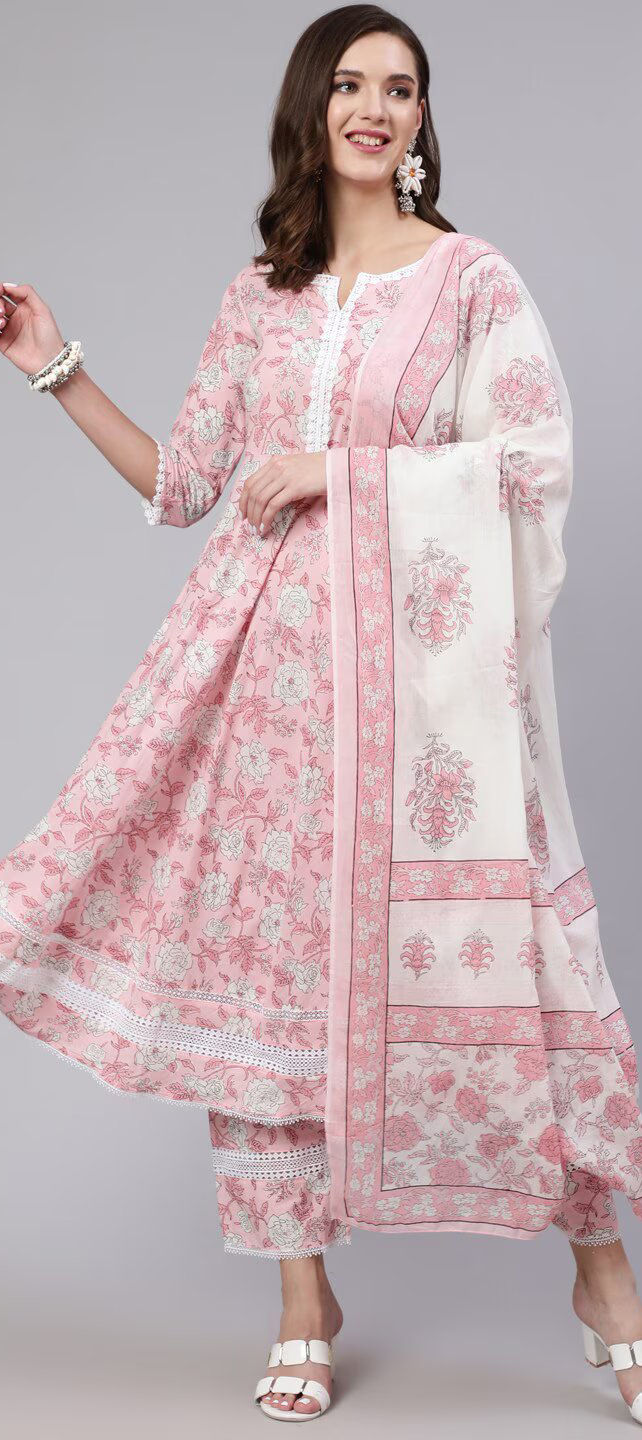 Pink and Majenta color Salwar Kameez in Cotton fabric with Floral, Printed work