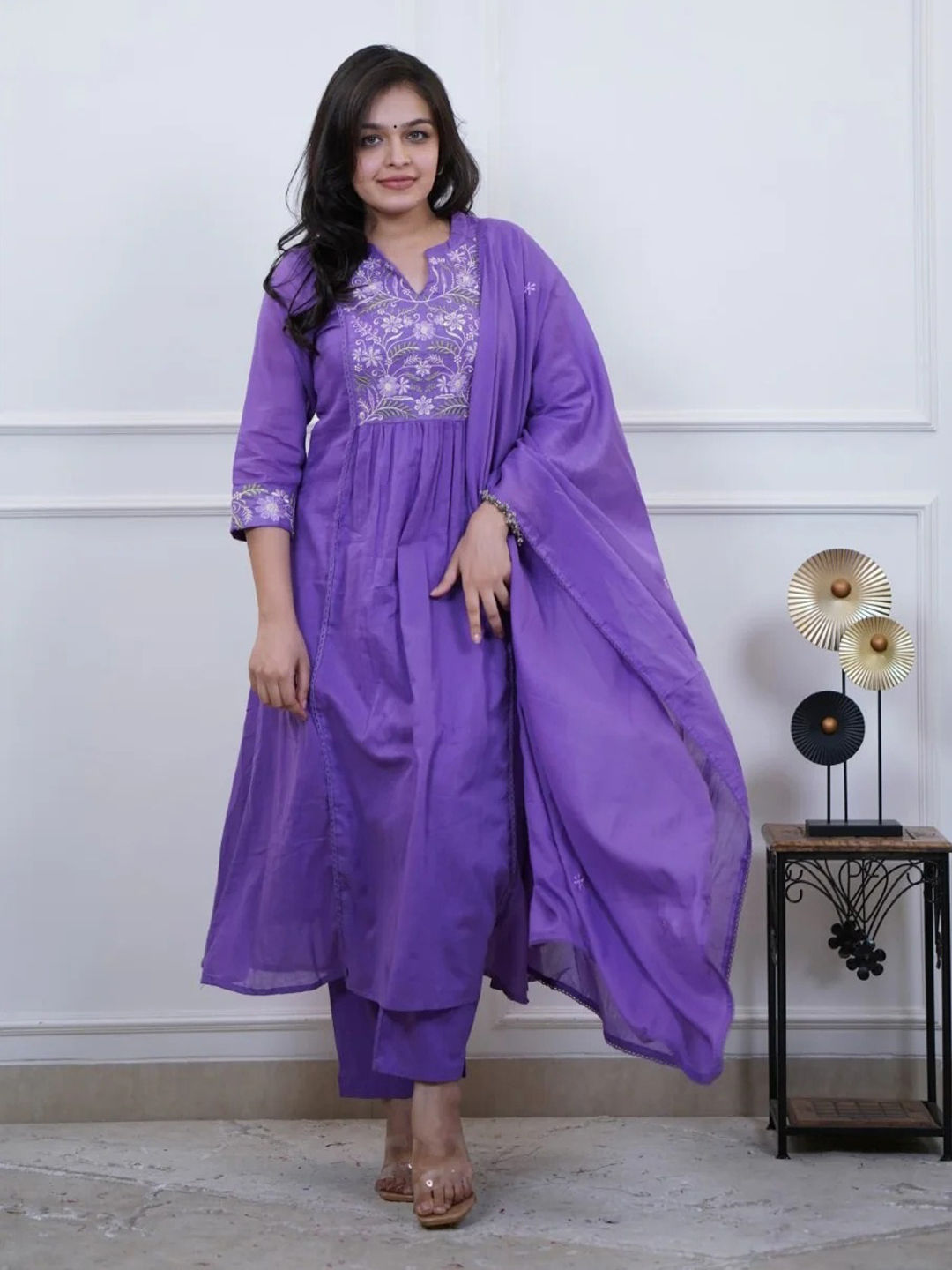 in Purple and Violet with Embroidered work