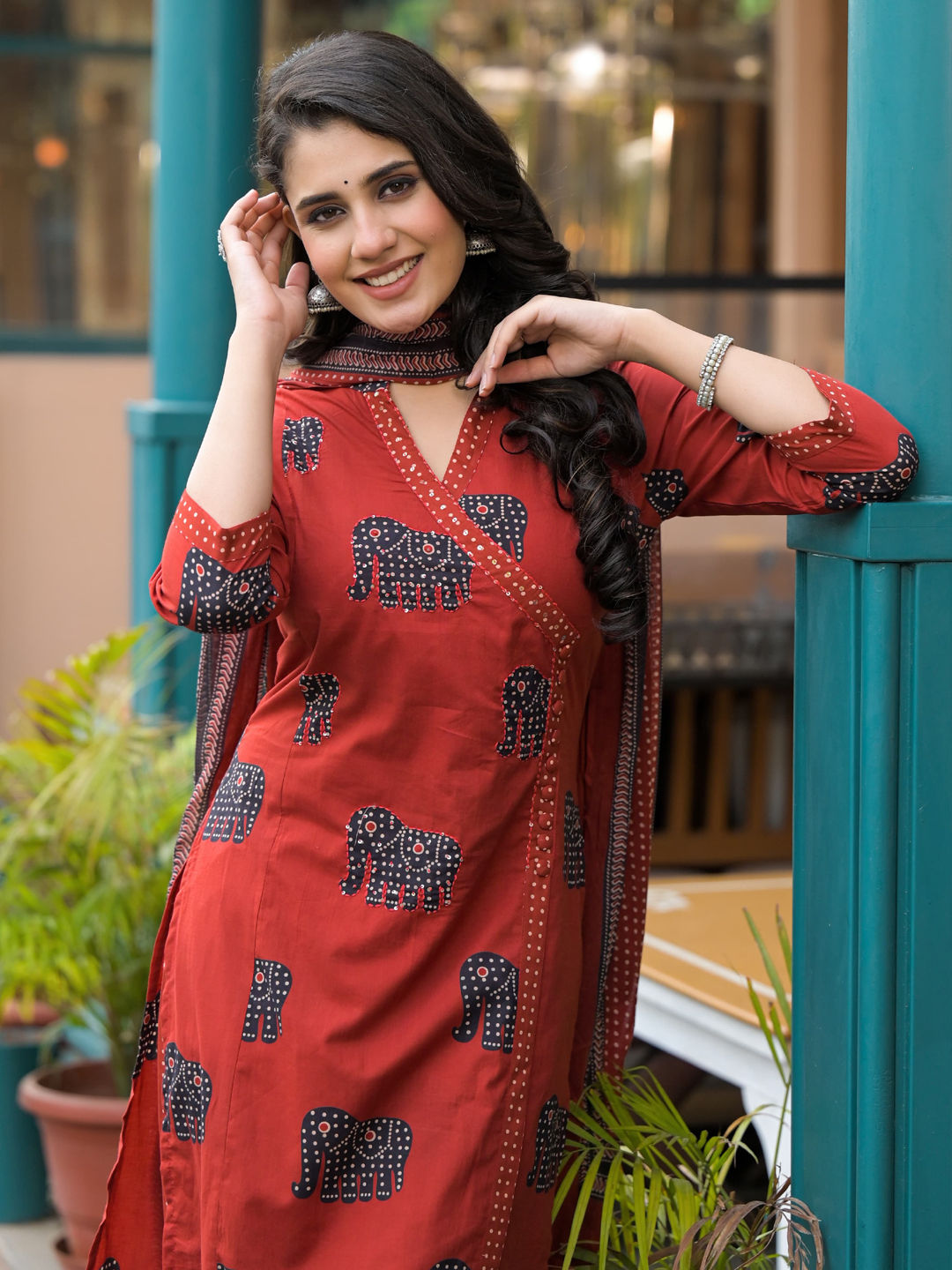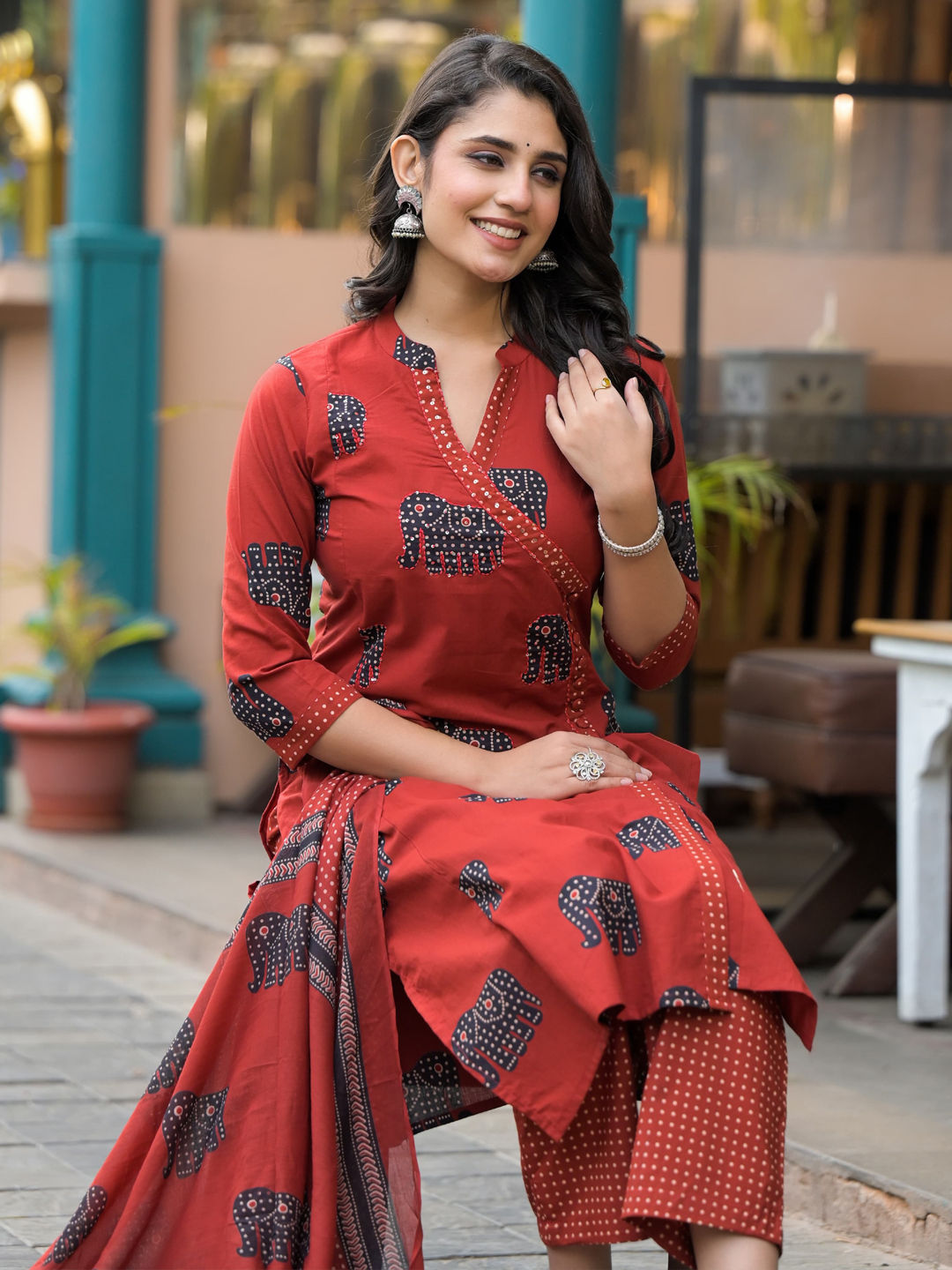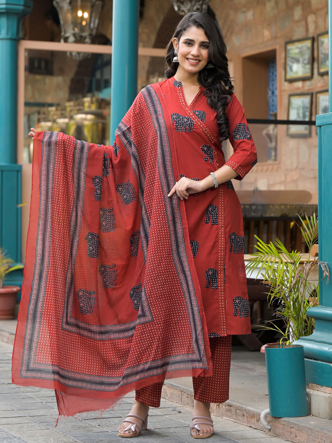 in Red and Maroon with Printed work