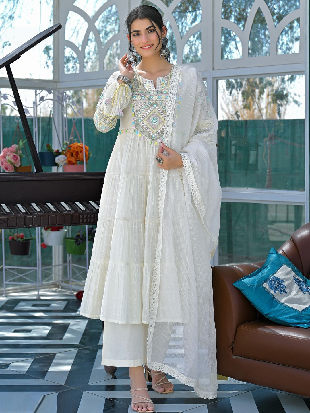 in White and Off White with Embroidered work