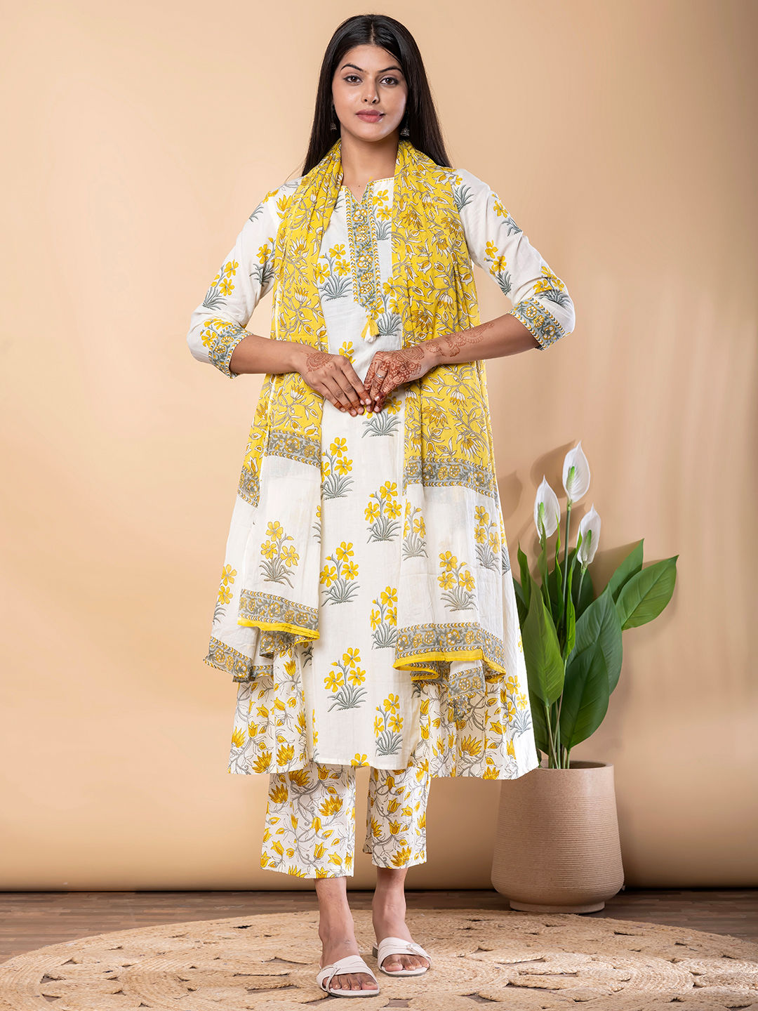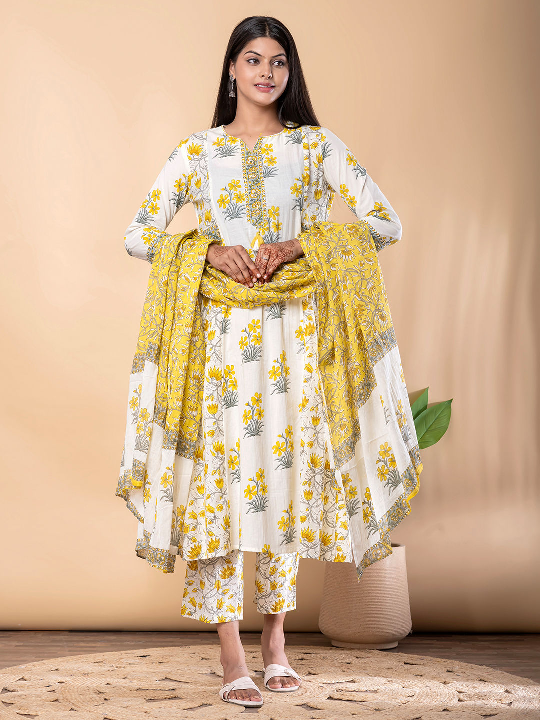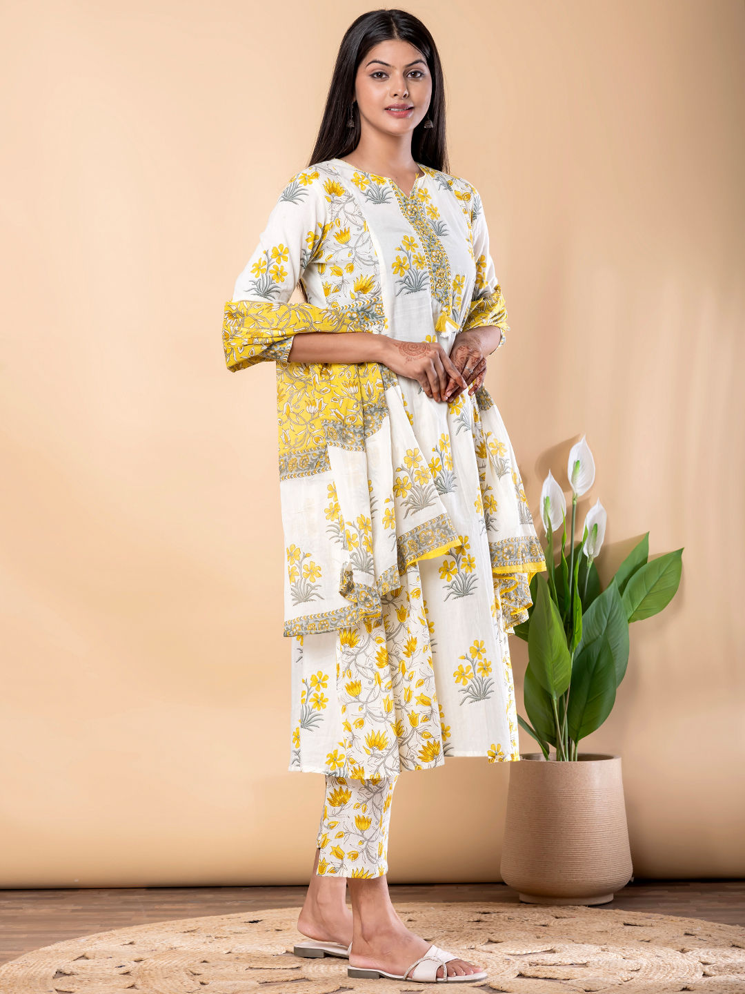 in Yellow with Floral work