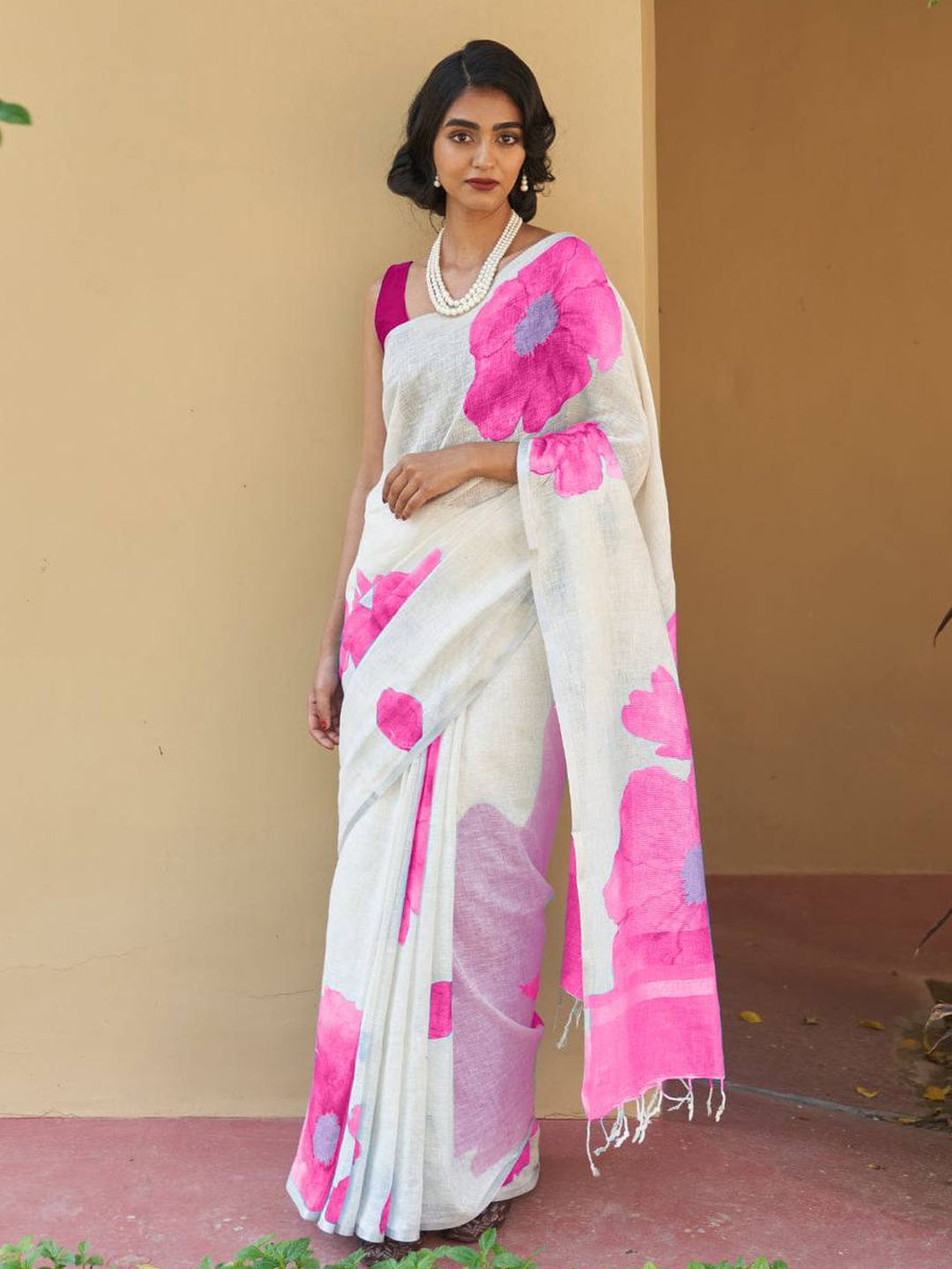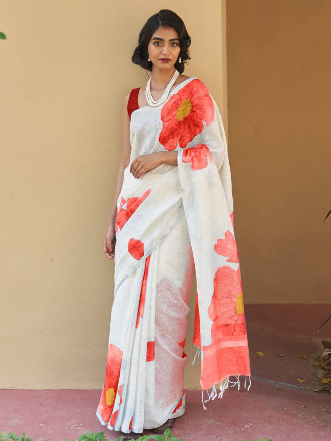 Multicolor color Saree in Cotton, Linen fabric with Digital Print work