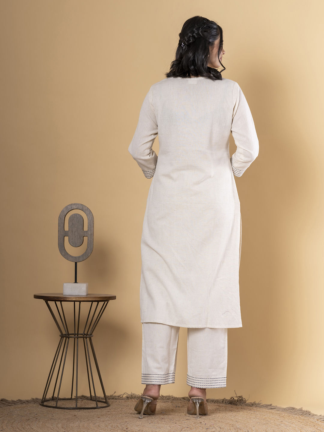 White and Off White color Salwar Kameez in Cotton Flex fabric with Embroidered, Resham, Thread work