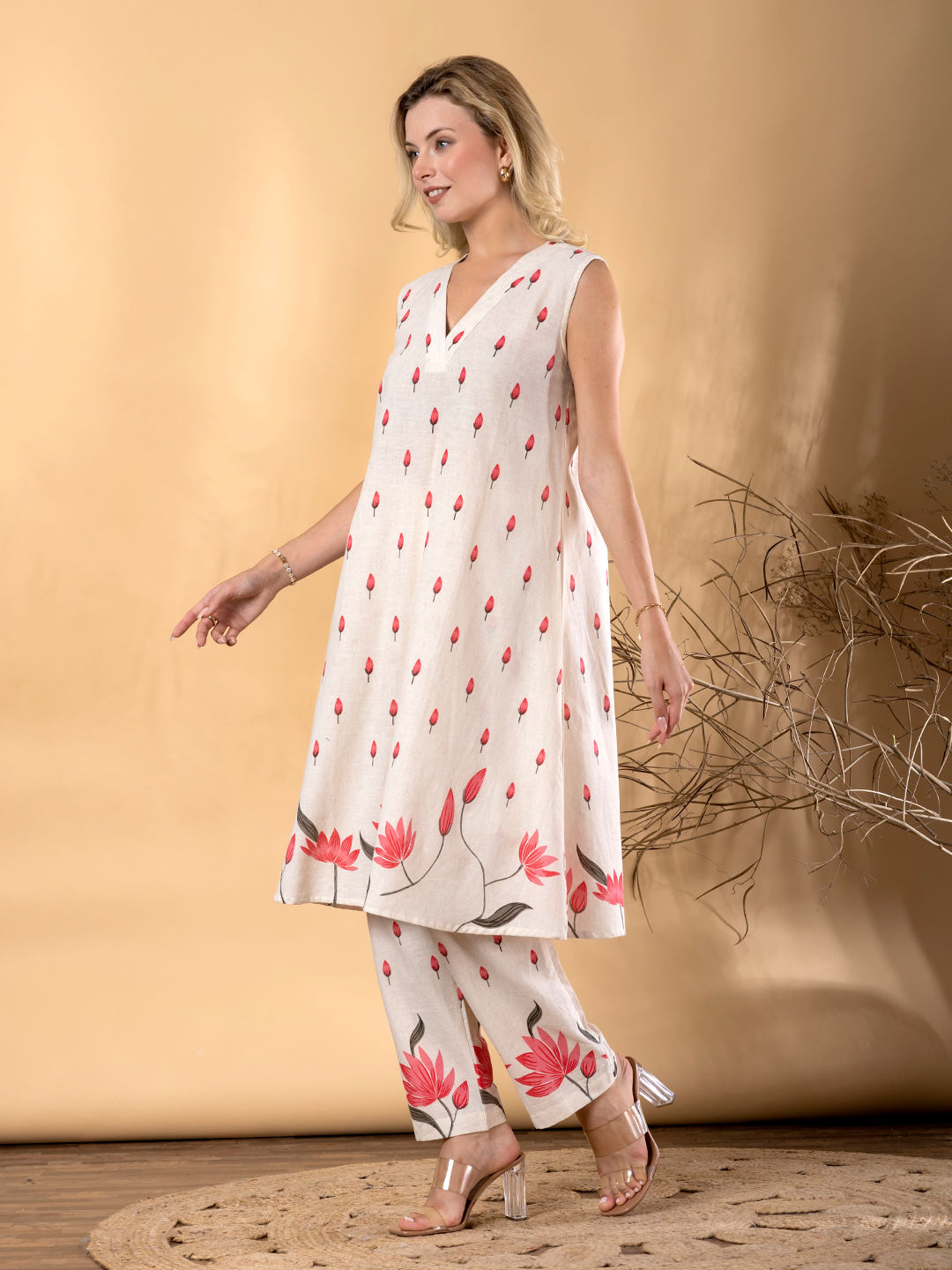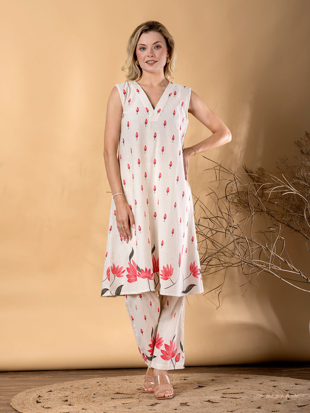 Cotton Festive Salwar Kameez in White and Off White with Floral work