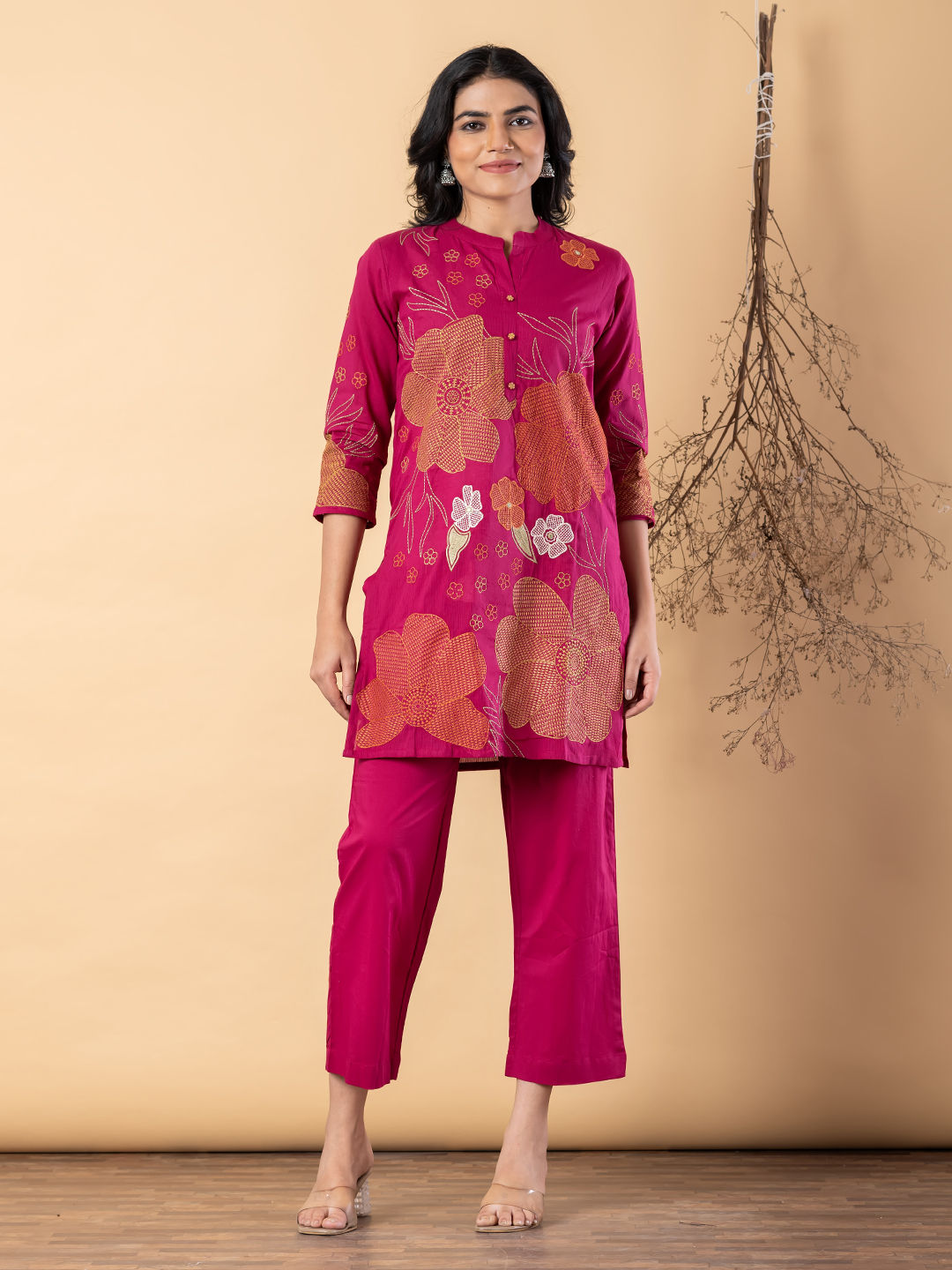 Pink and Majenta color Co-ords Set in Cotton Flex fabric with Embroidered, Resham, Thread work