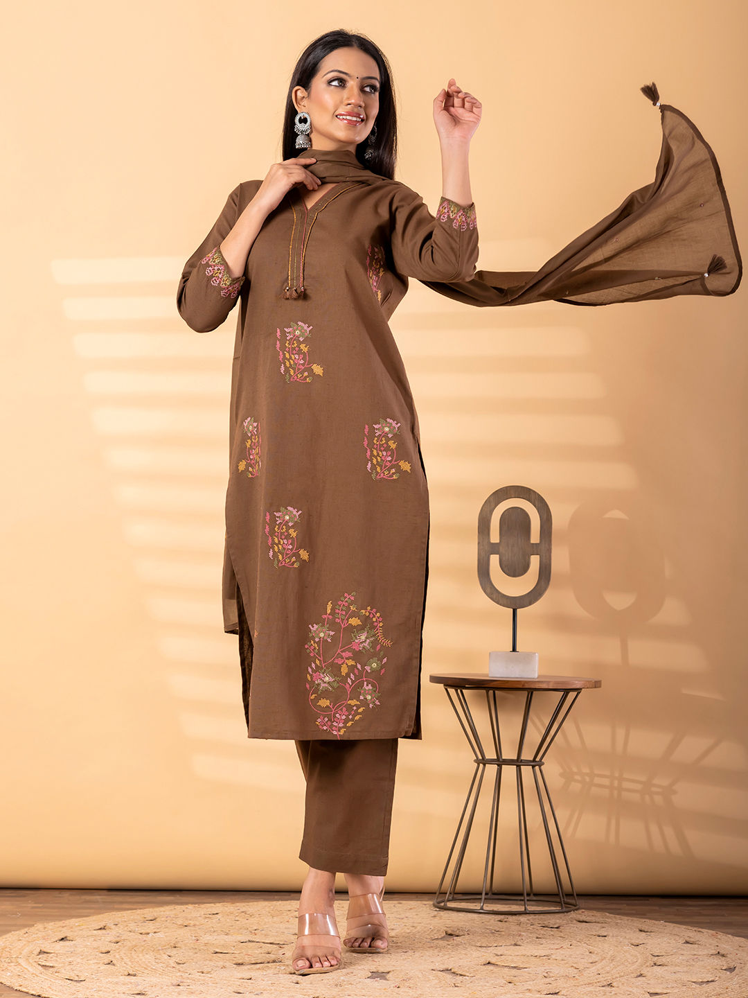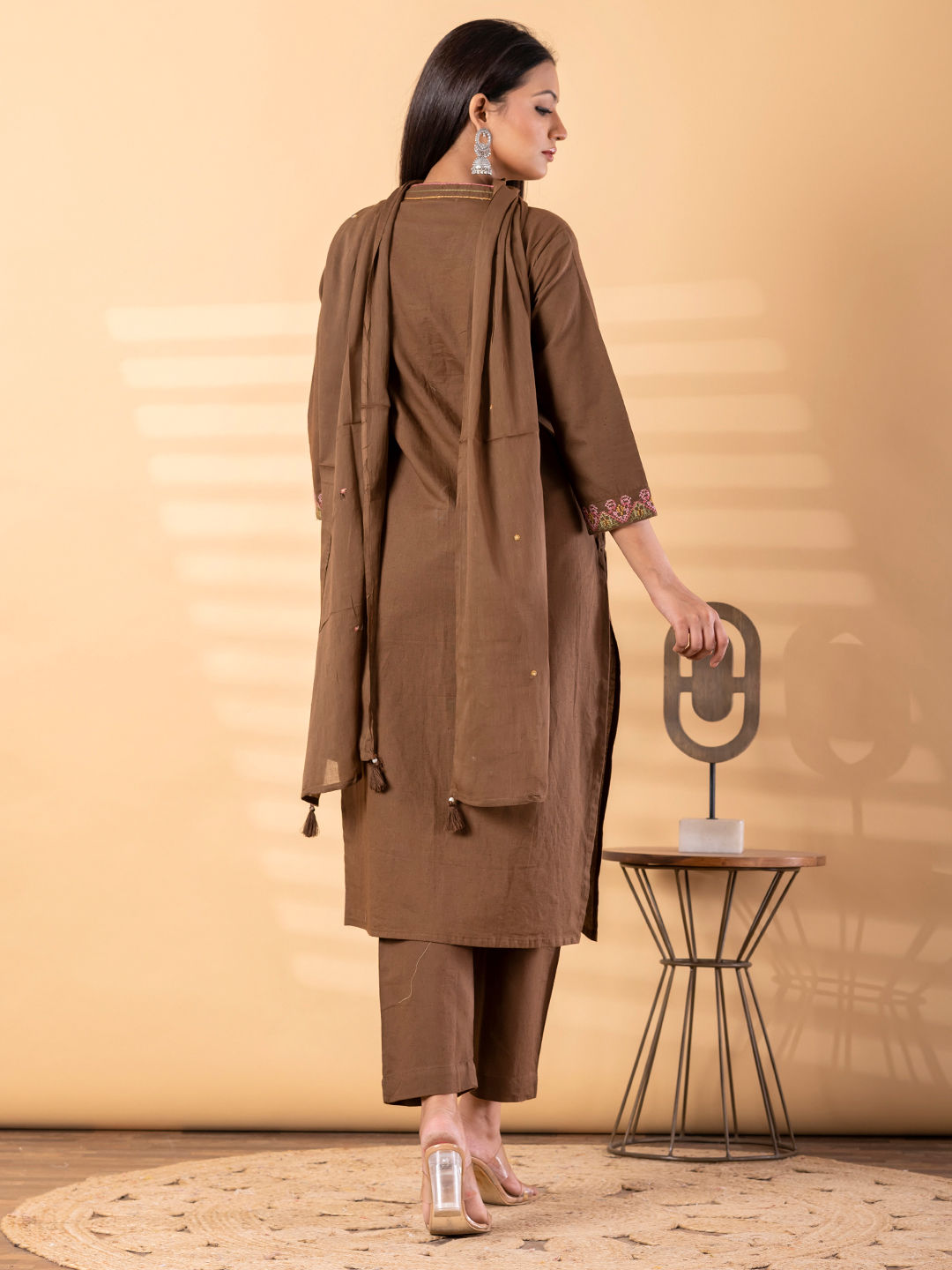 in Beige and Brown with Resham work