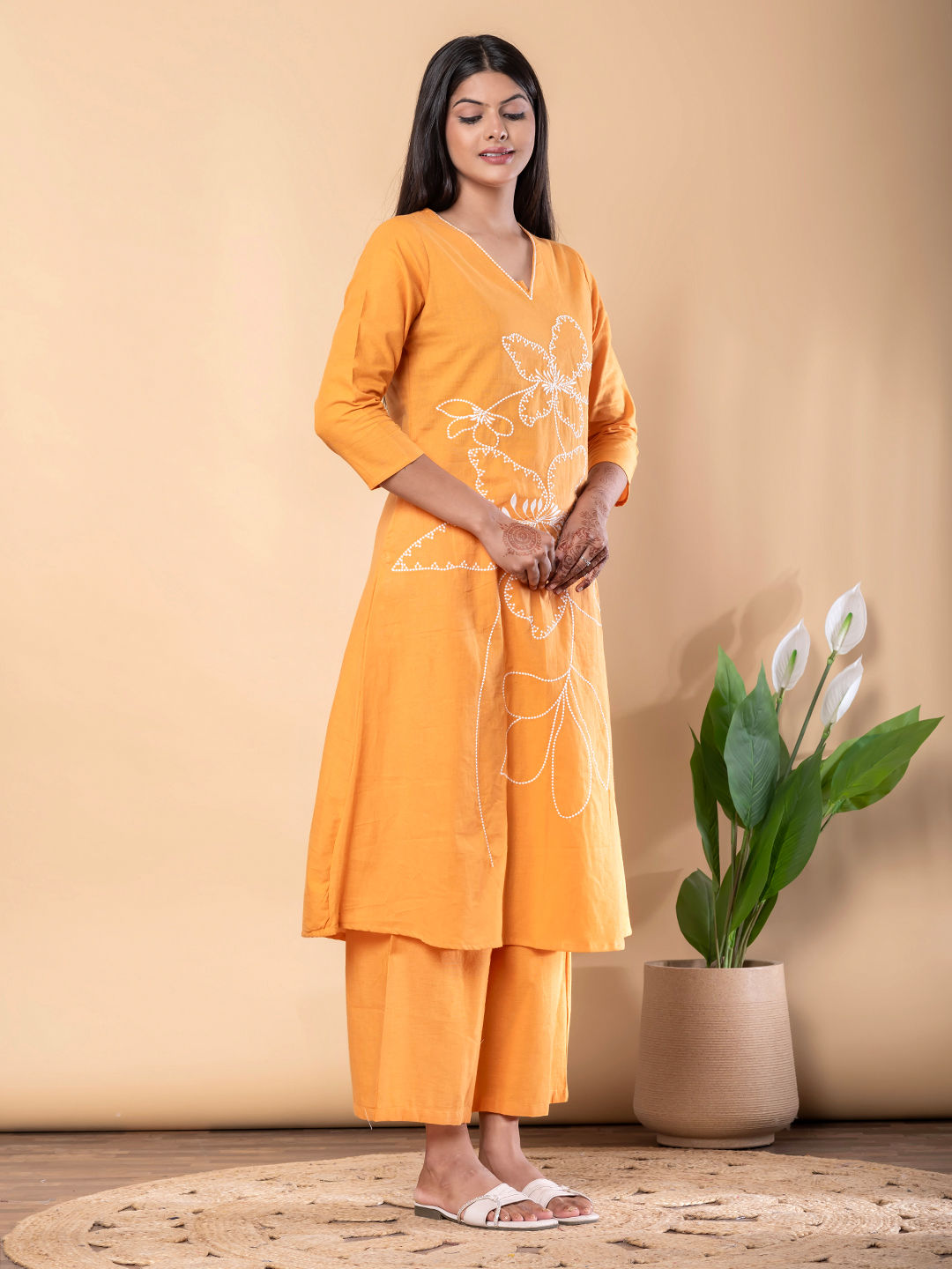 in Orange with Thread work
