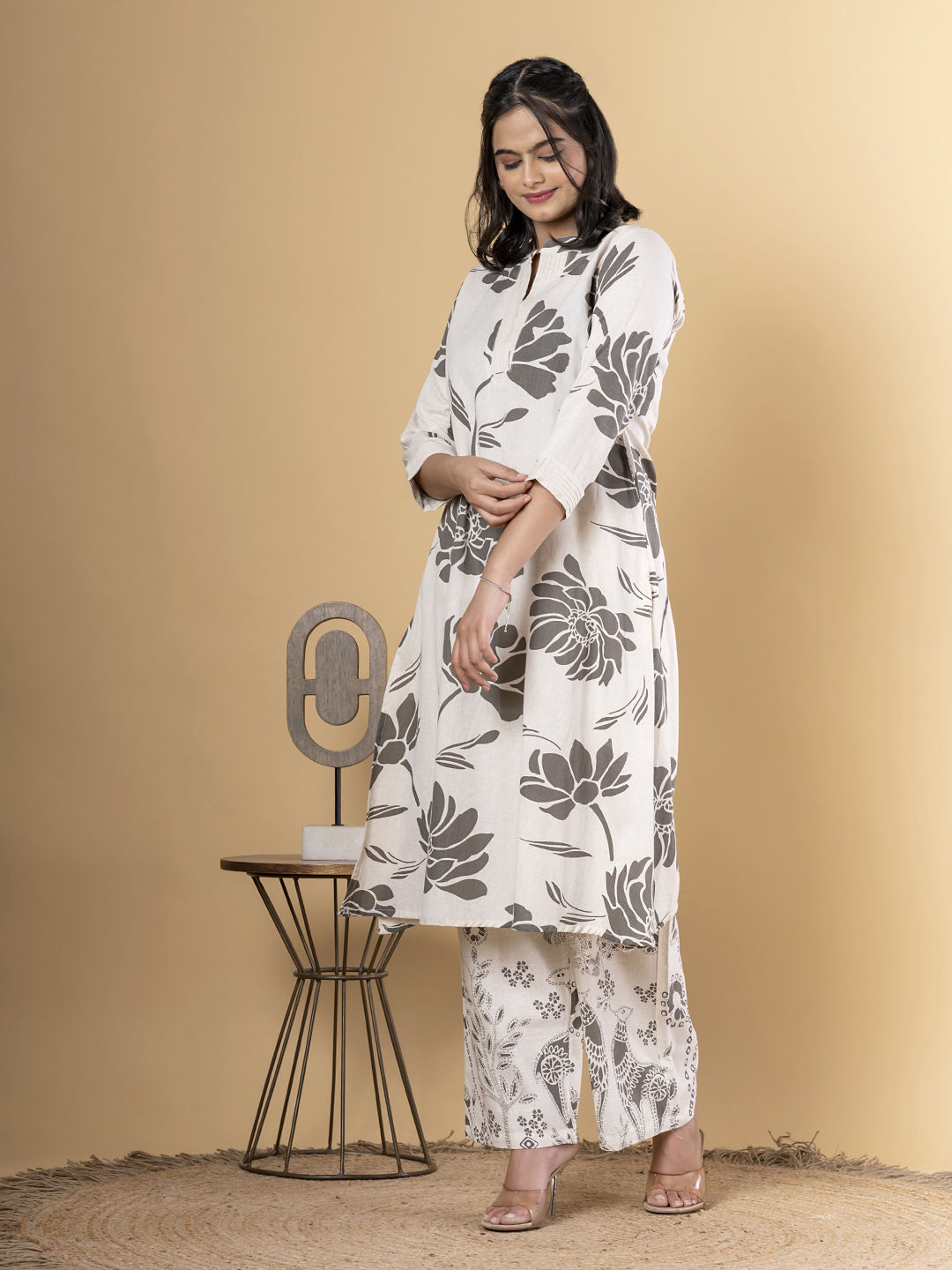 Black and Grey, White and Off White color Salwar Kameez in Cotton Flex fabric with Floral, Printed work