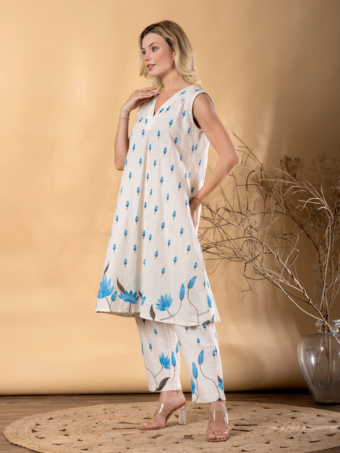 Blue, White and Off White color Salwar Kameez in Cotton Flex fabric with Printed work