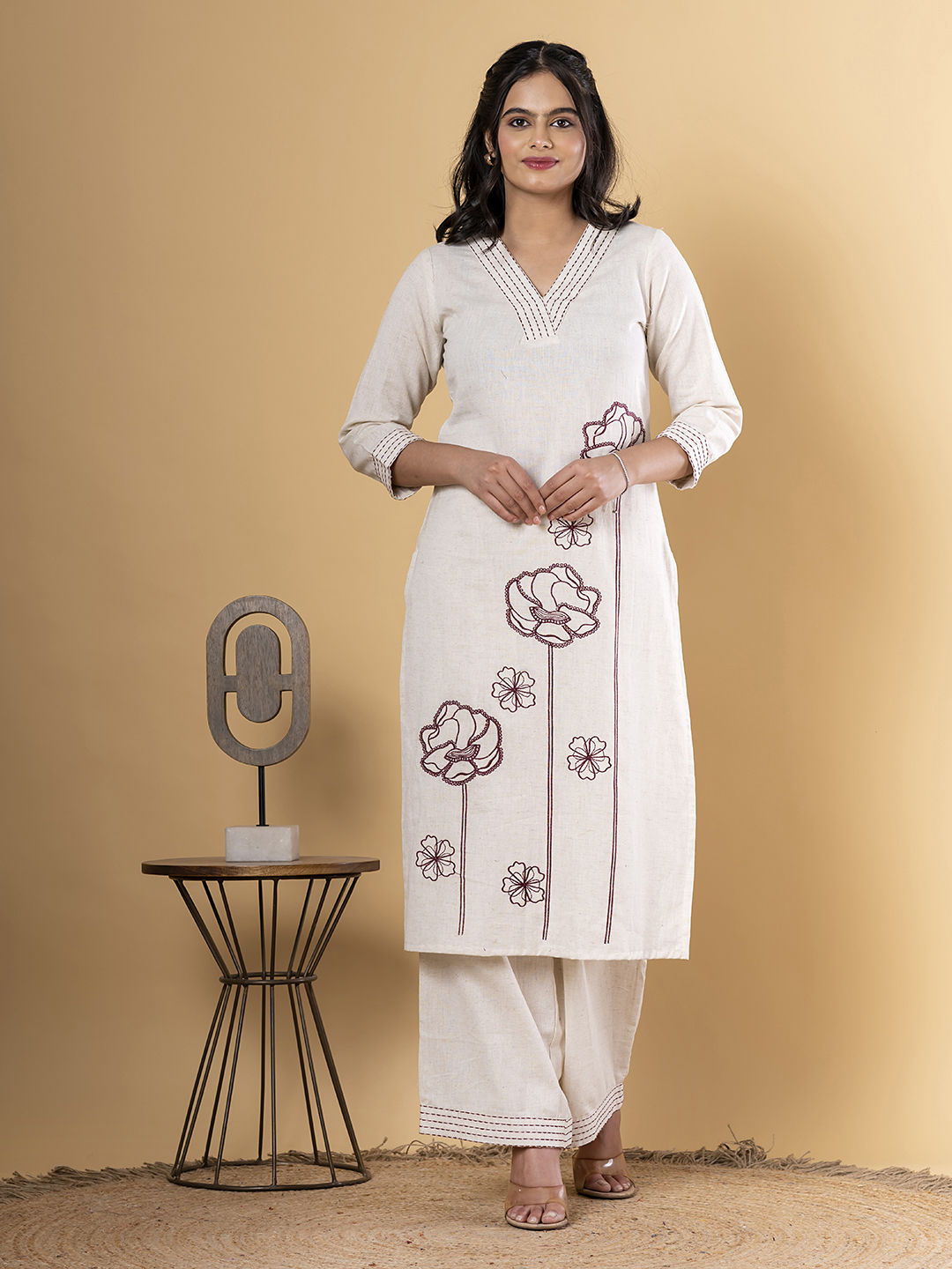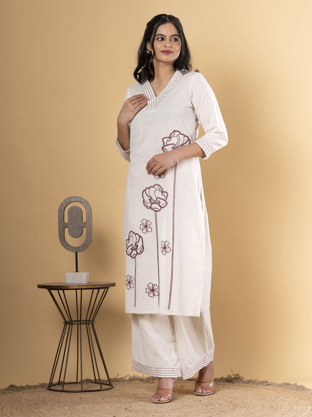 in White and Off White with Thread work