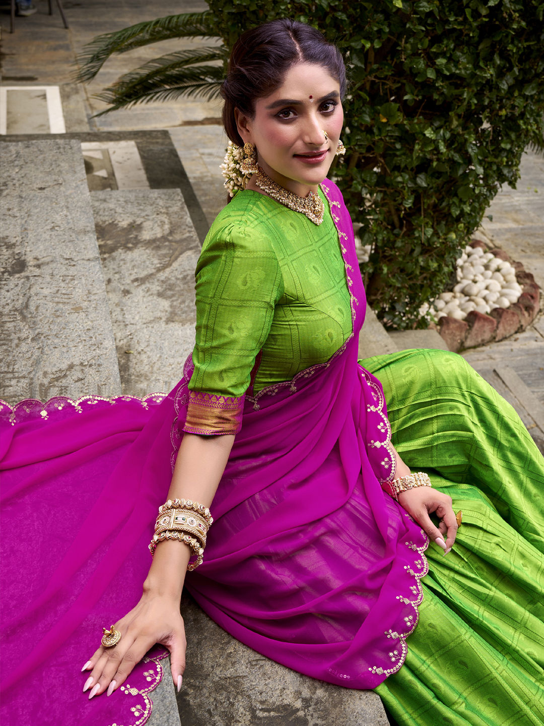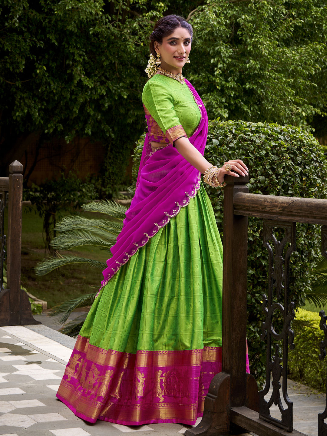 in Green with Zari work