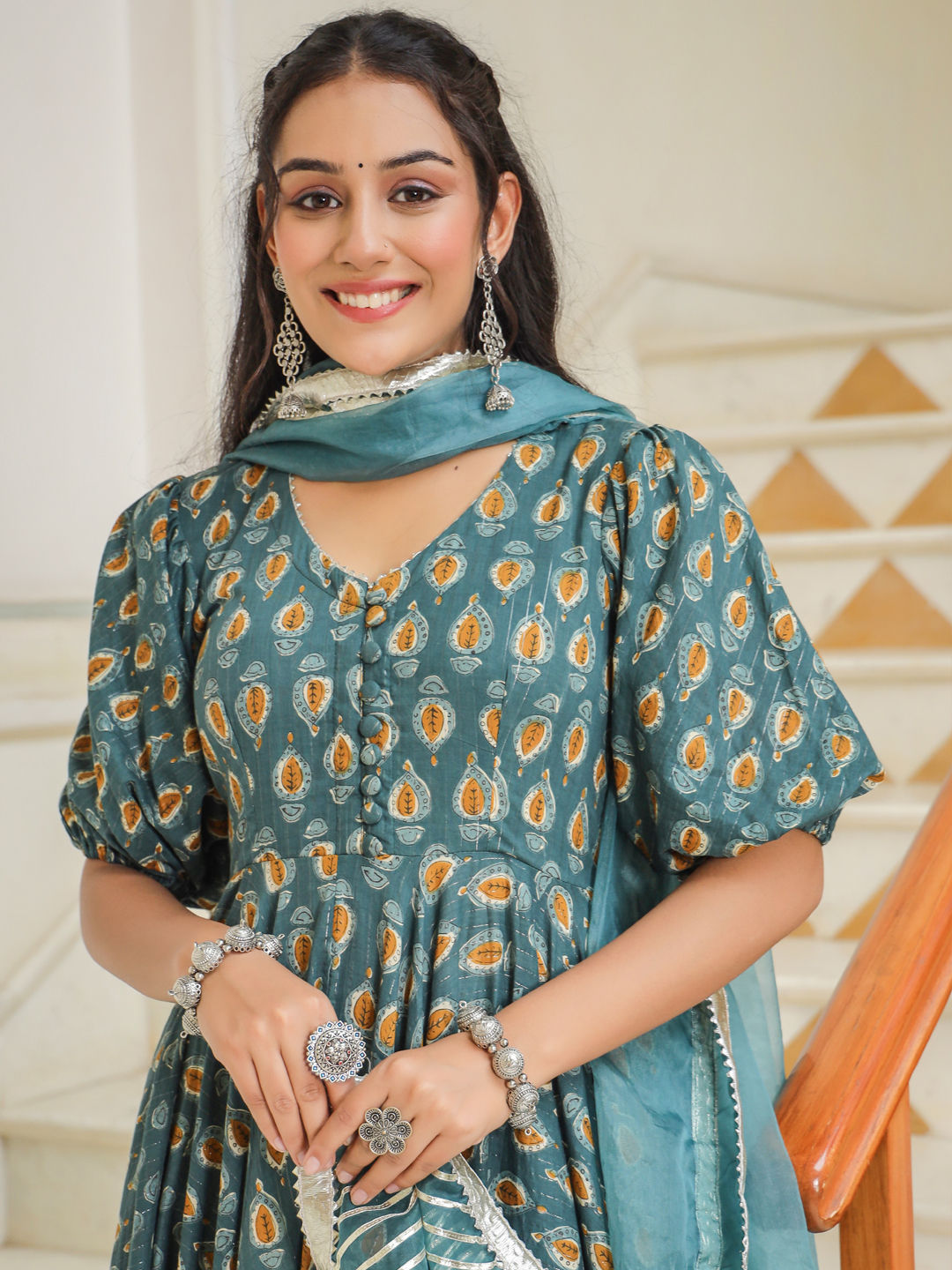 Organza Silk Wedding Salwar Kameez in Blue with Printed work