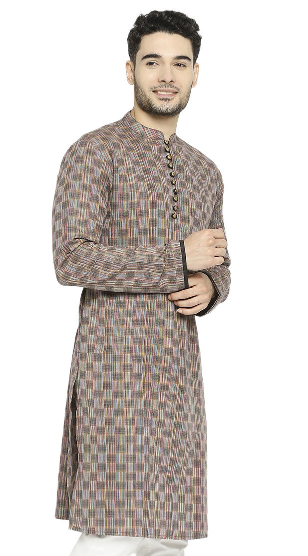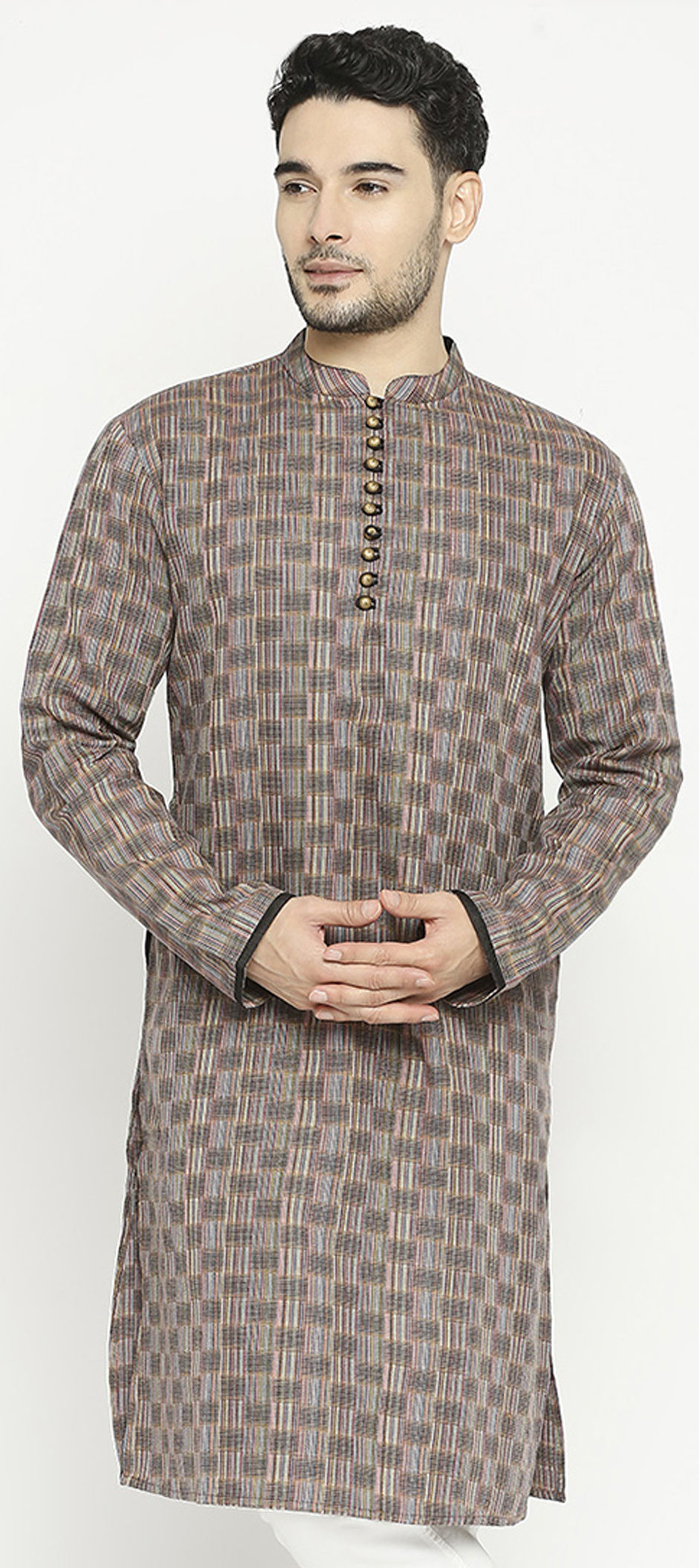 Cotton Party Wear Kurta in Black and Grey with Printed work