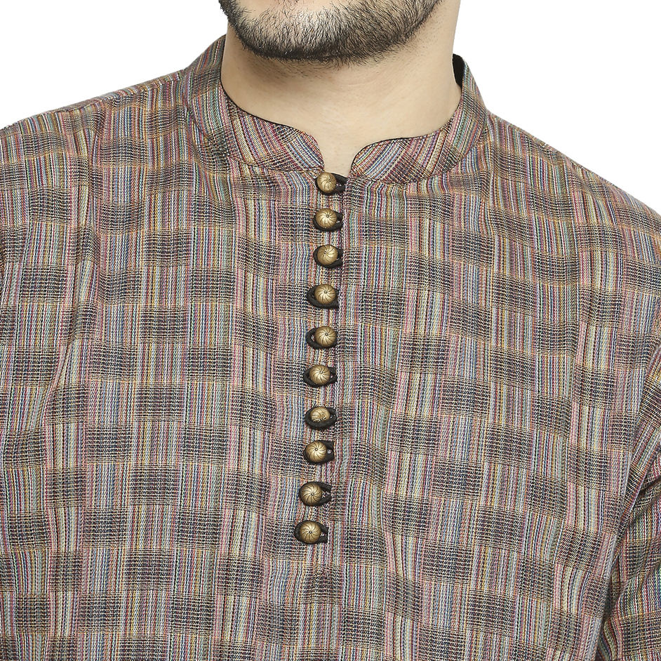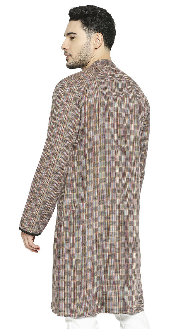 Cotton Party Wear Kurta in Black and Grey with Thread work