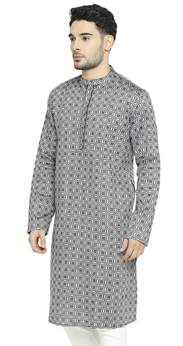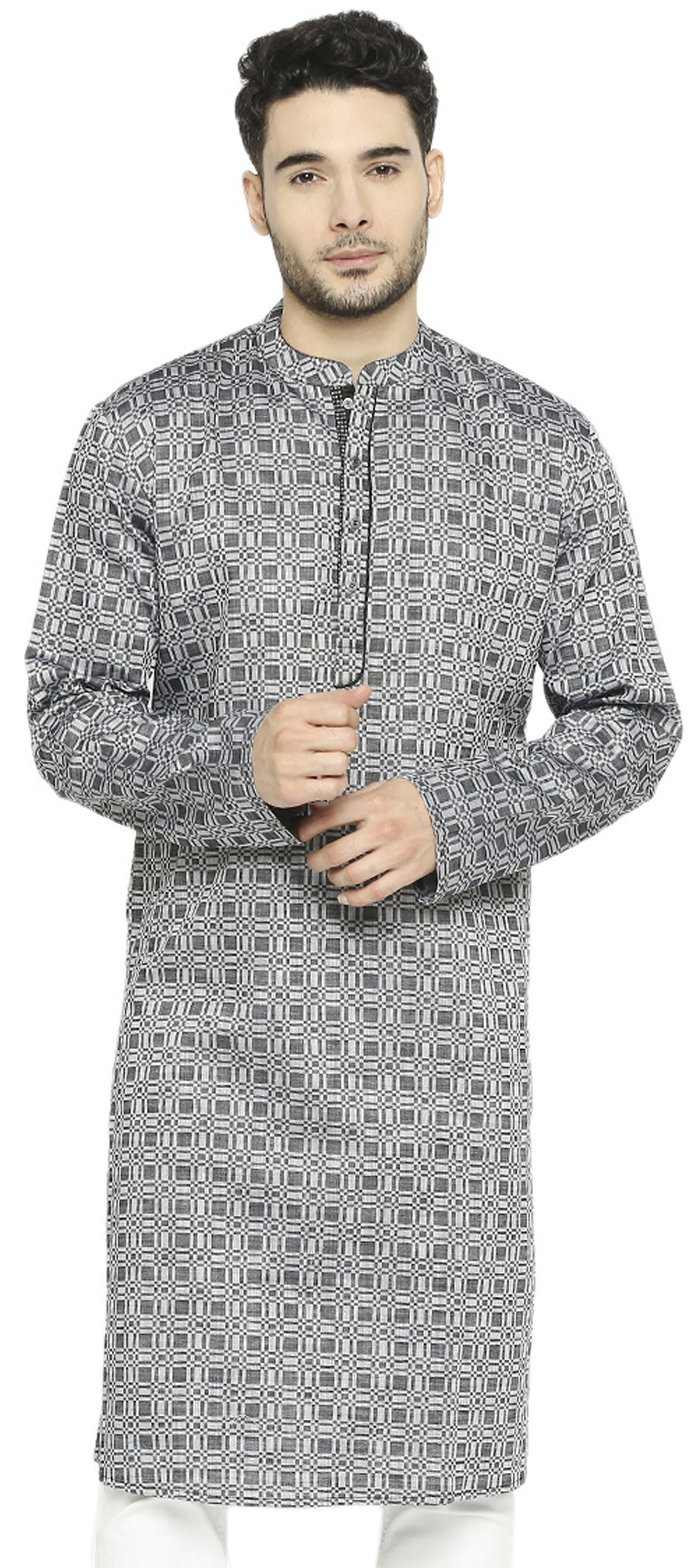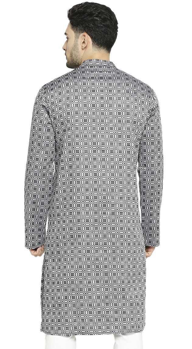Black and Grey color Kurta in Cotton fabric with Printed work