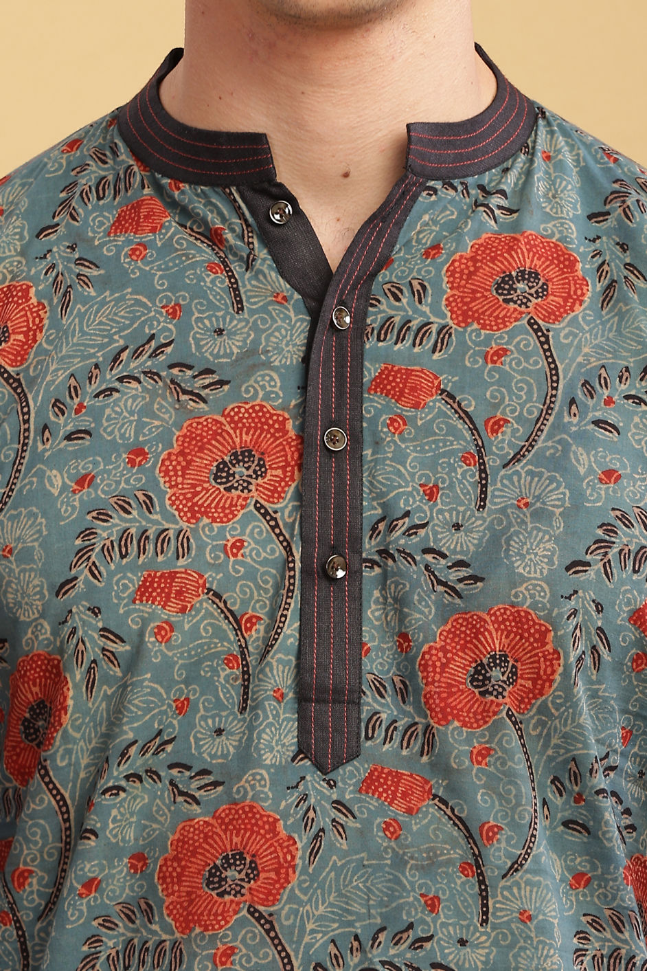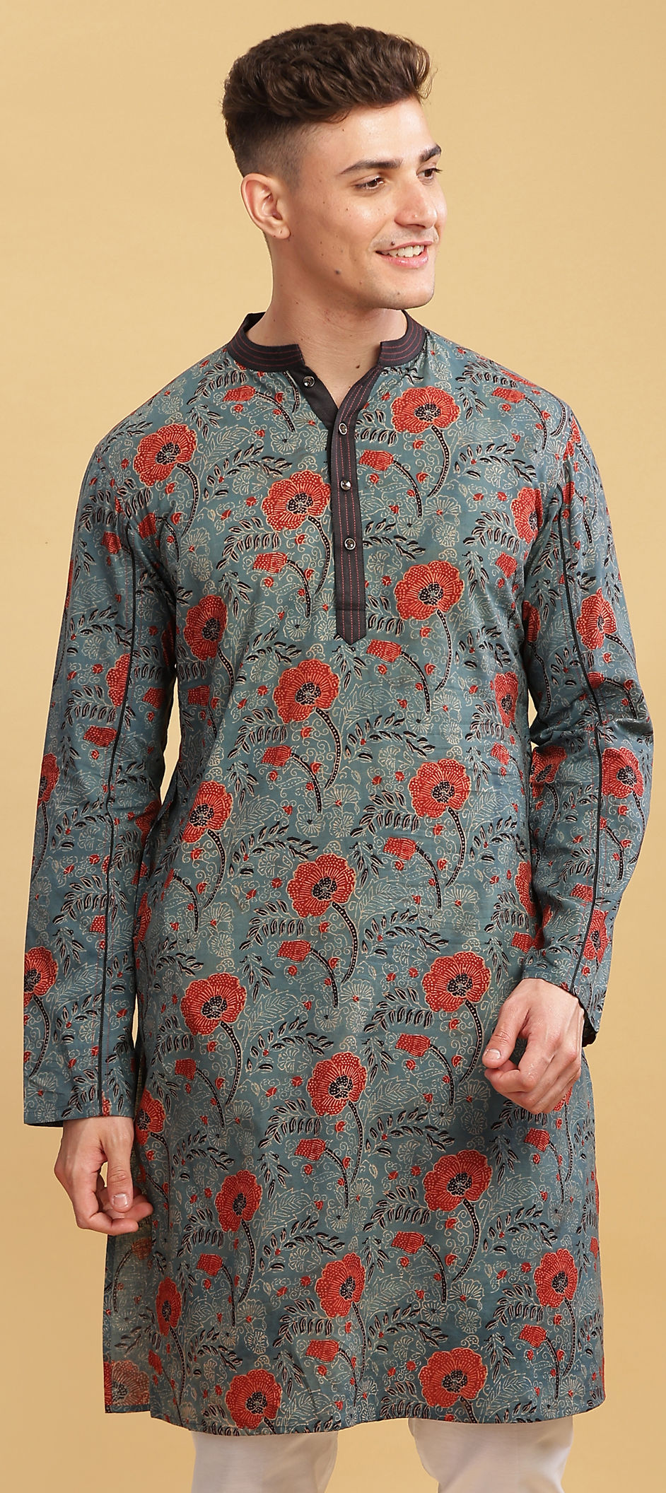 Black and Grey color Kurta in Cotton fabric with Printed work