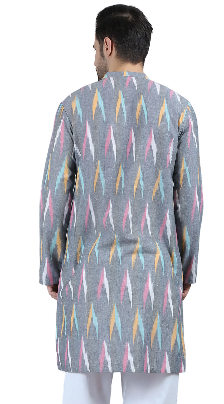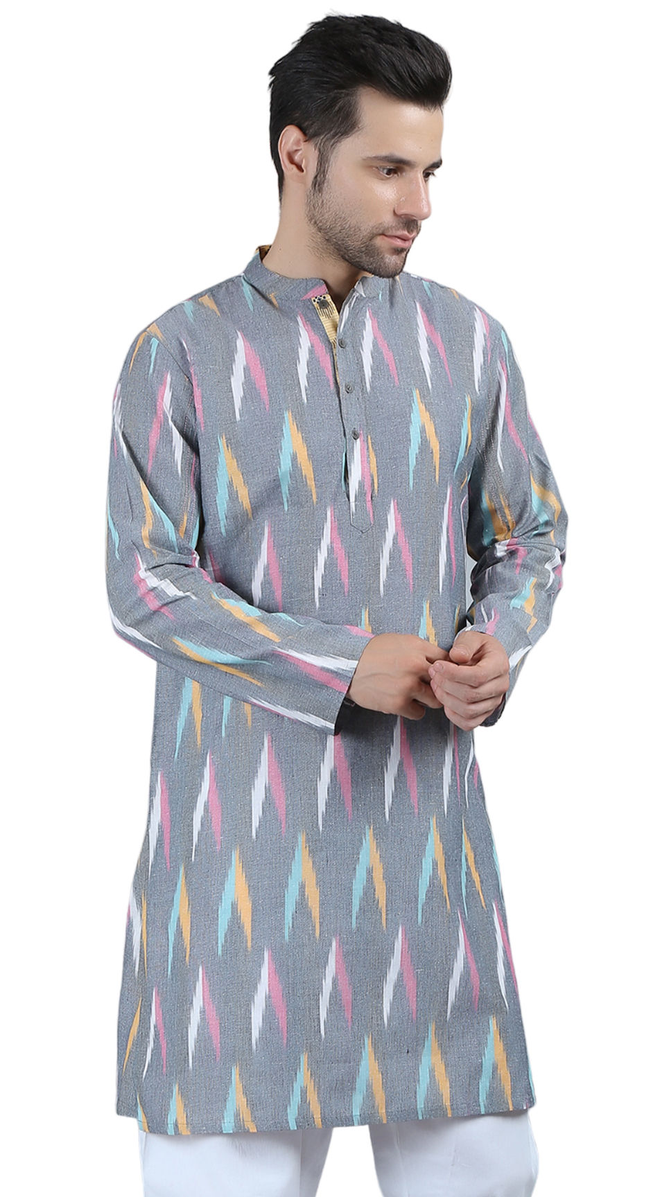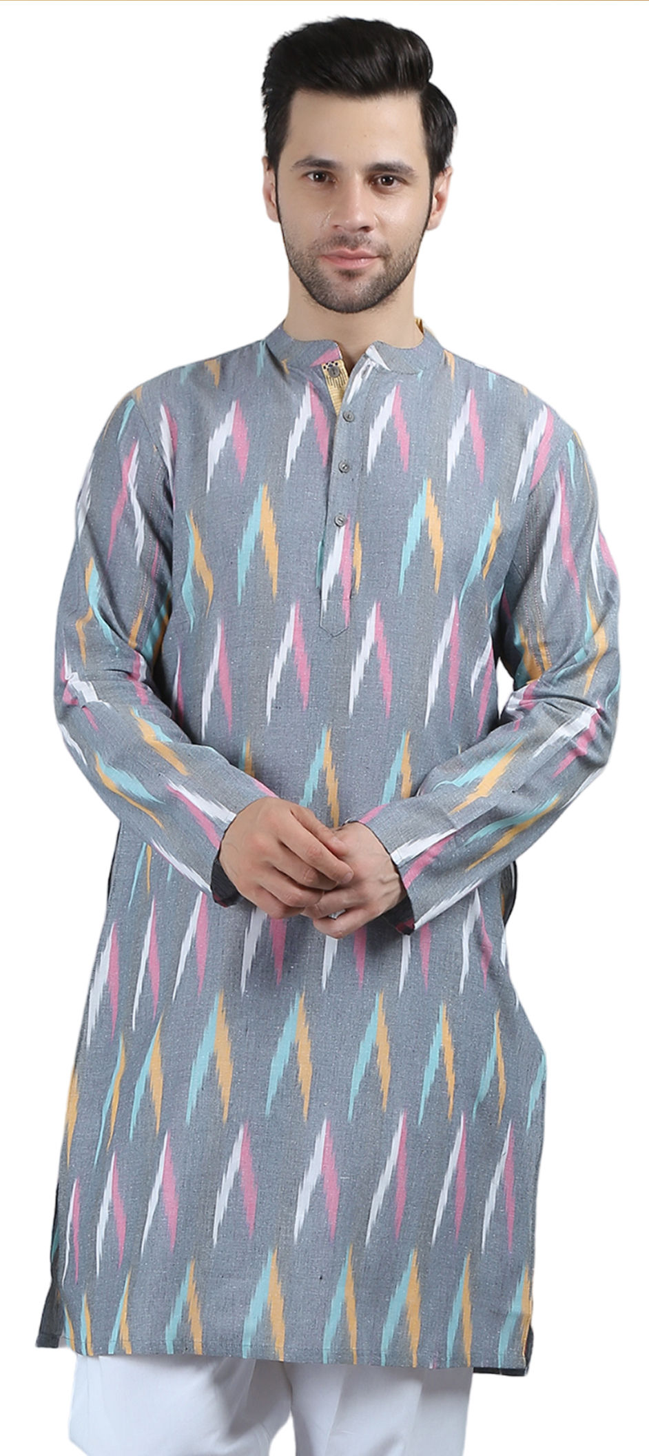 Cotton Party Wear Kurta in Black and Grey with Printed work
