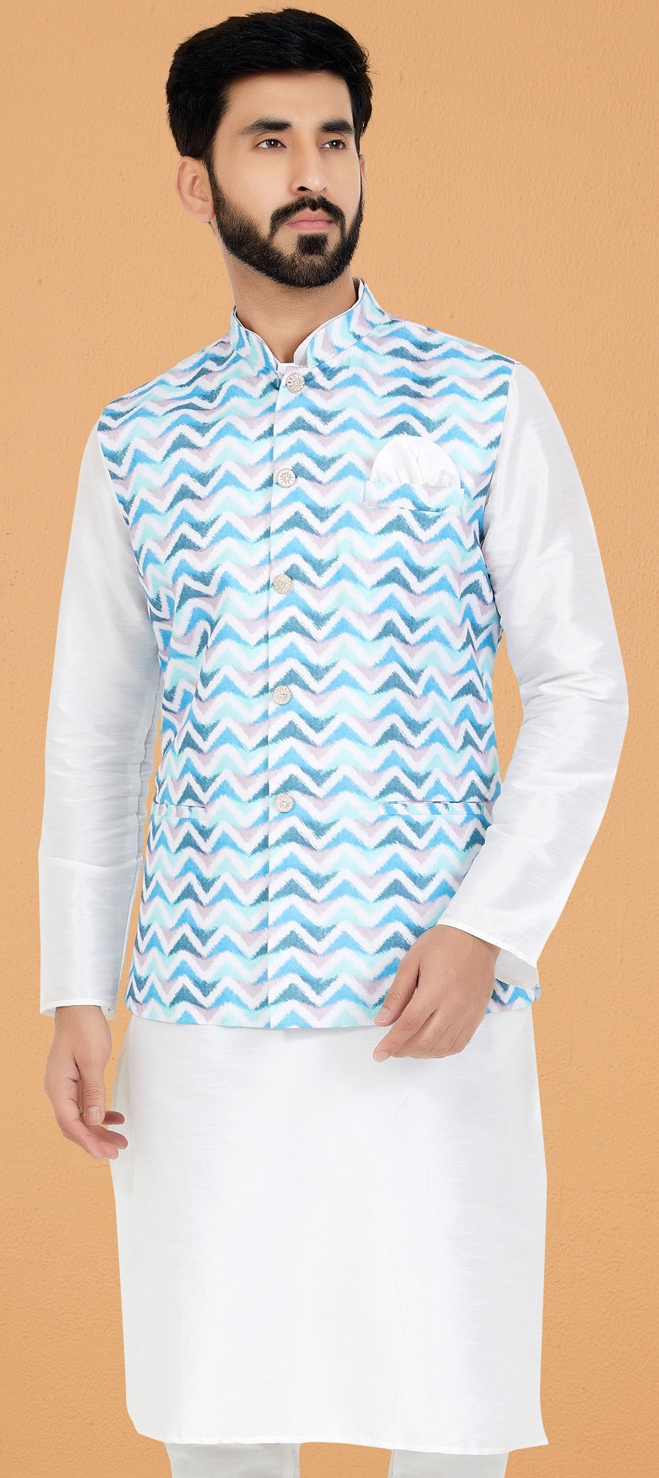 Multicolor color Nehru Jacket in Cotton fabric with Digital Print work