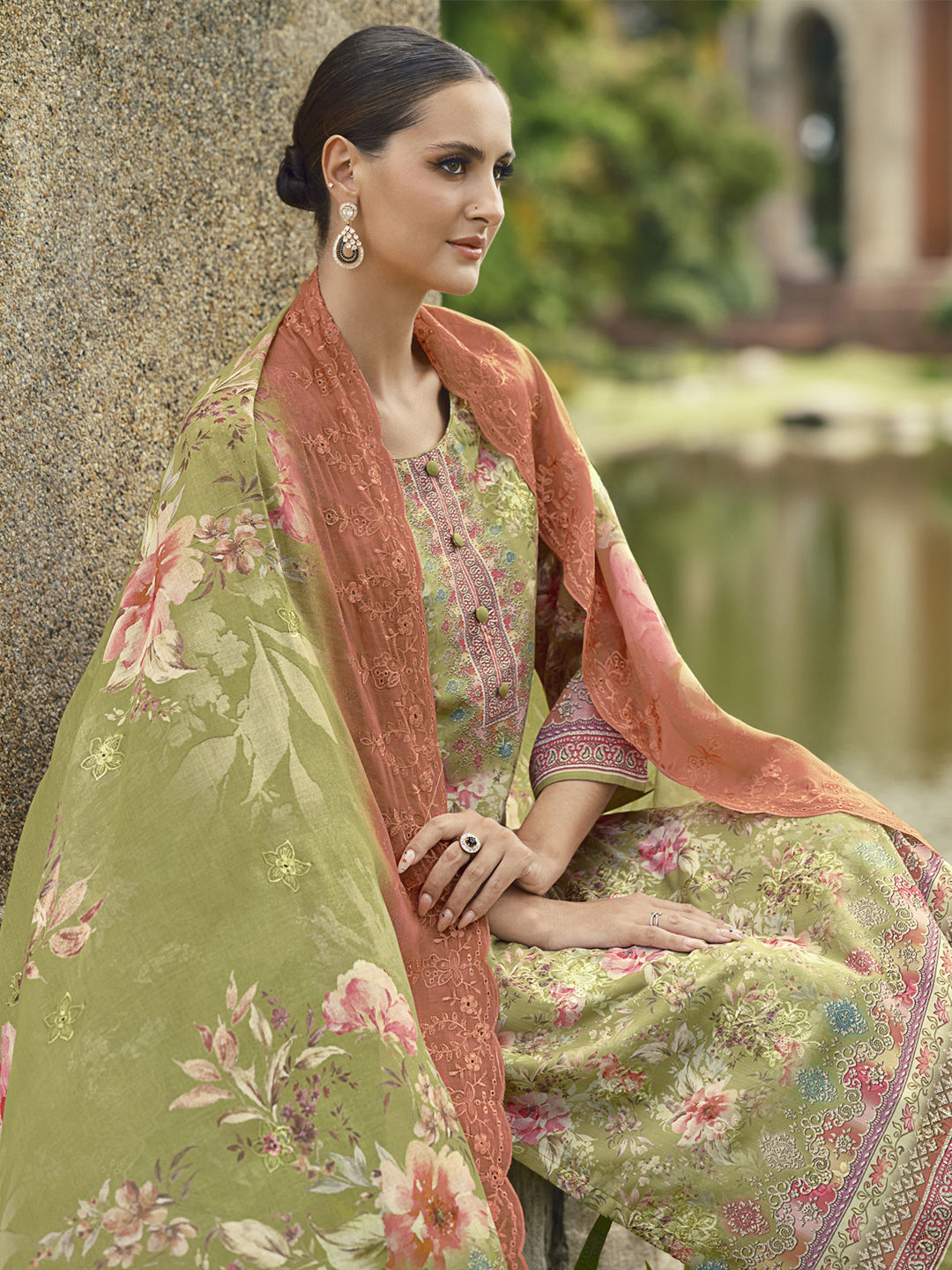 Green color Salwar Kameez in Cotton, Lawn fabric with Digital Print, Floral, Resham, Thread work