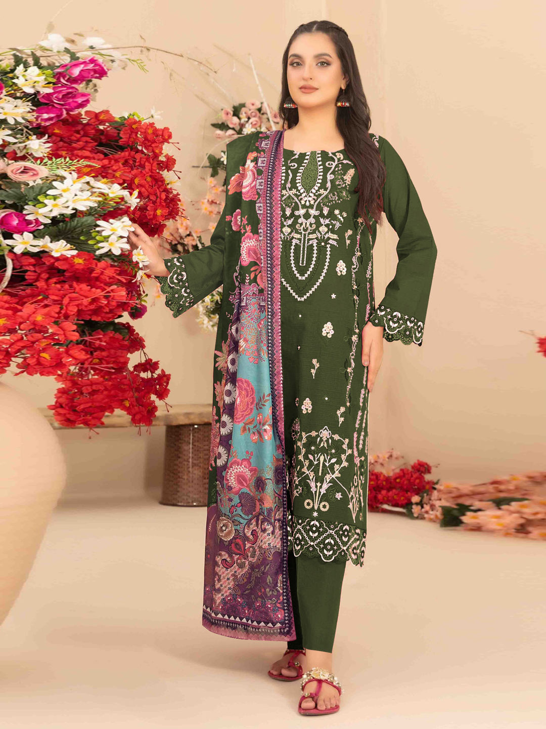 Green color Salwar Kameez in Cotton fabric with Embroidered, Sequence work