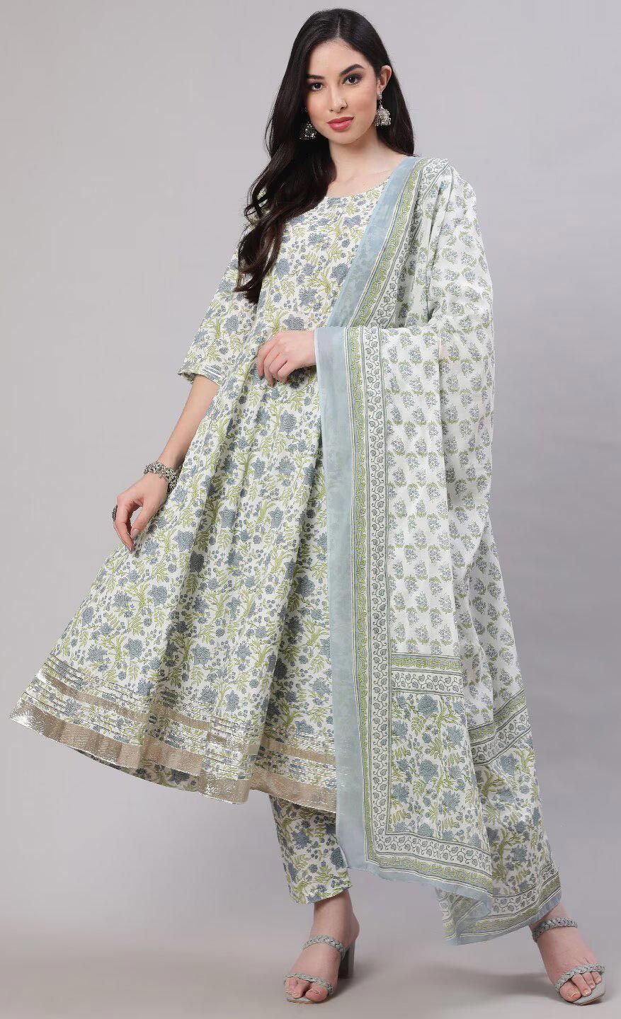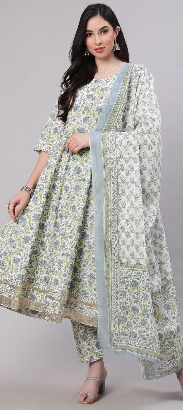 Multicolor color Salwar Kameez in Cotton fabric with Gota Patti, Printed work