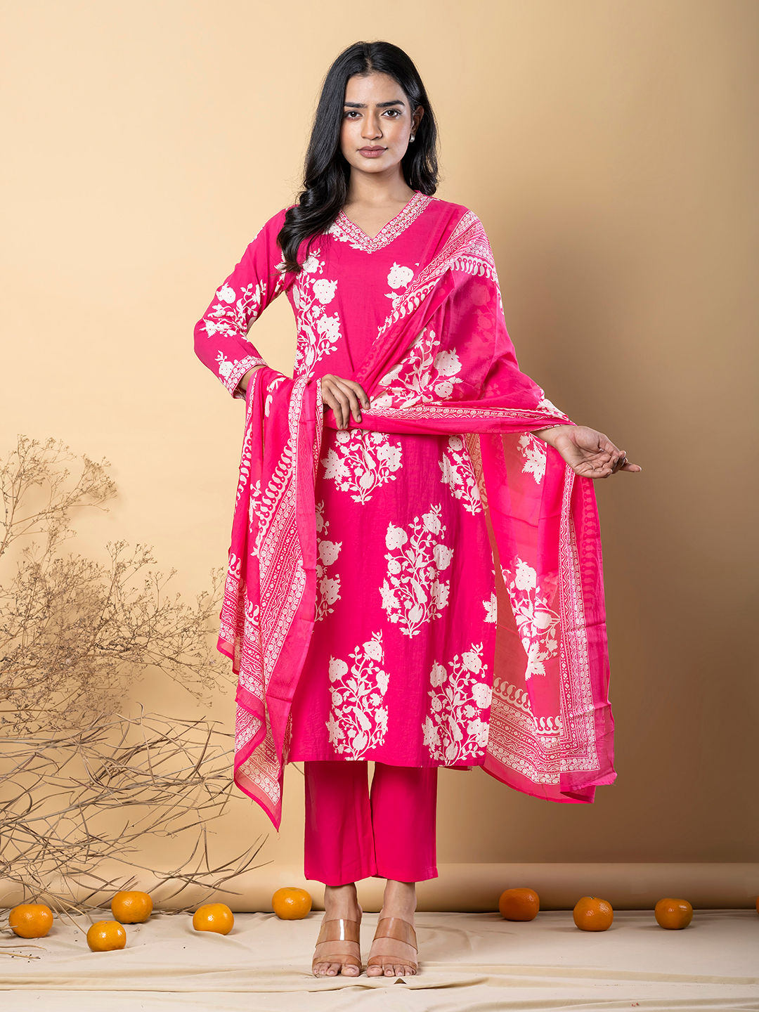 Cotton Summer Salwar Kameez in Pink and Majenta with Resham work