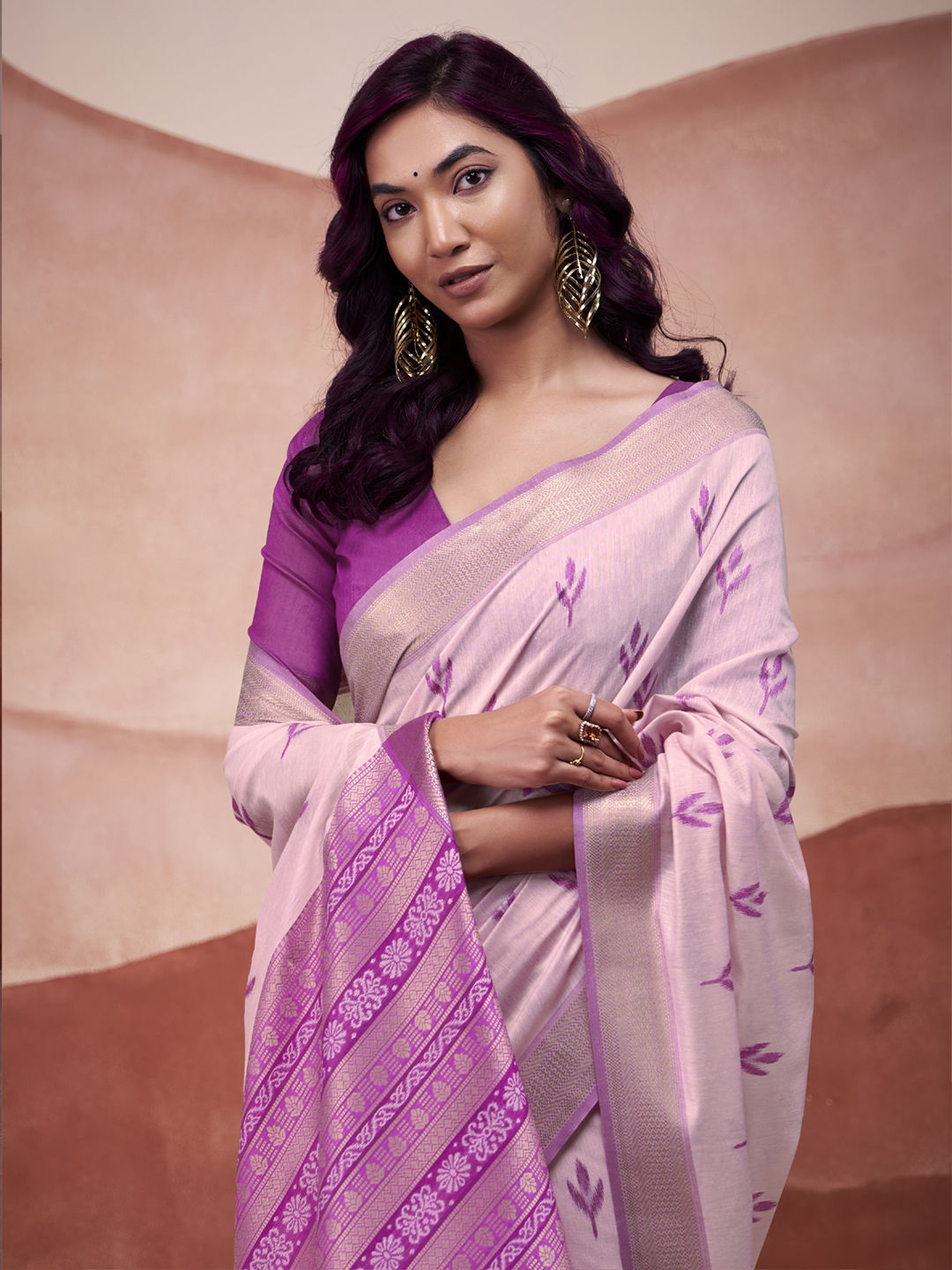 Cotton Party Wear Saree in Pink and Majenta with Weaving work