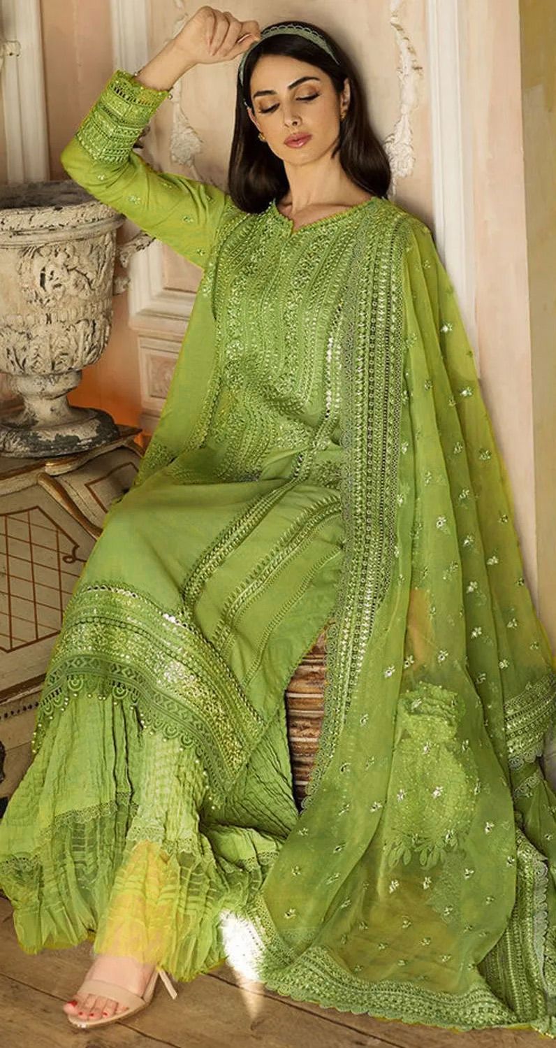 Green color Salwar Kameez in Cotton, Rayon fabric with Embroidered work