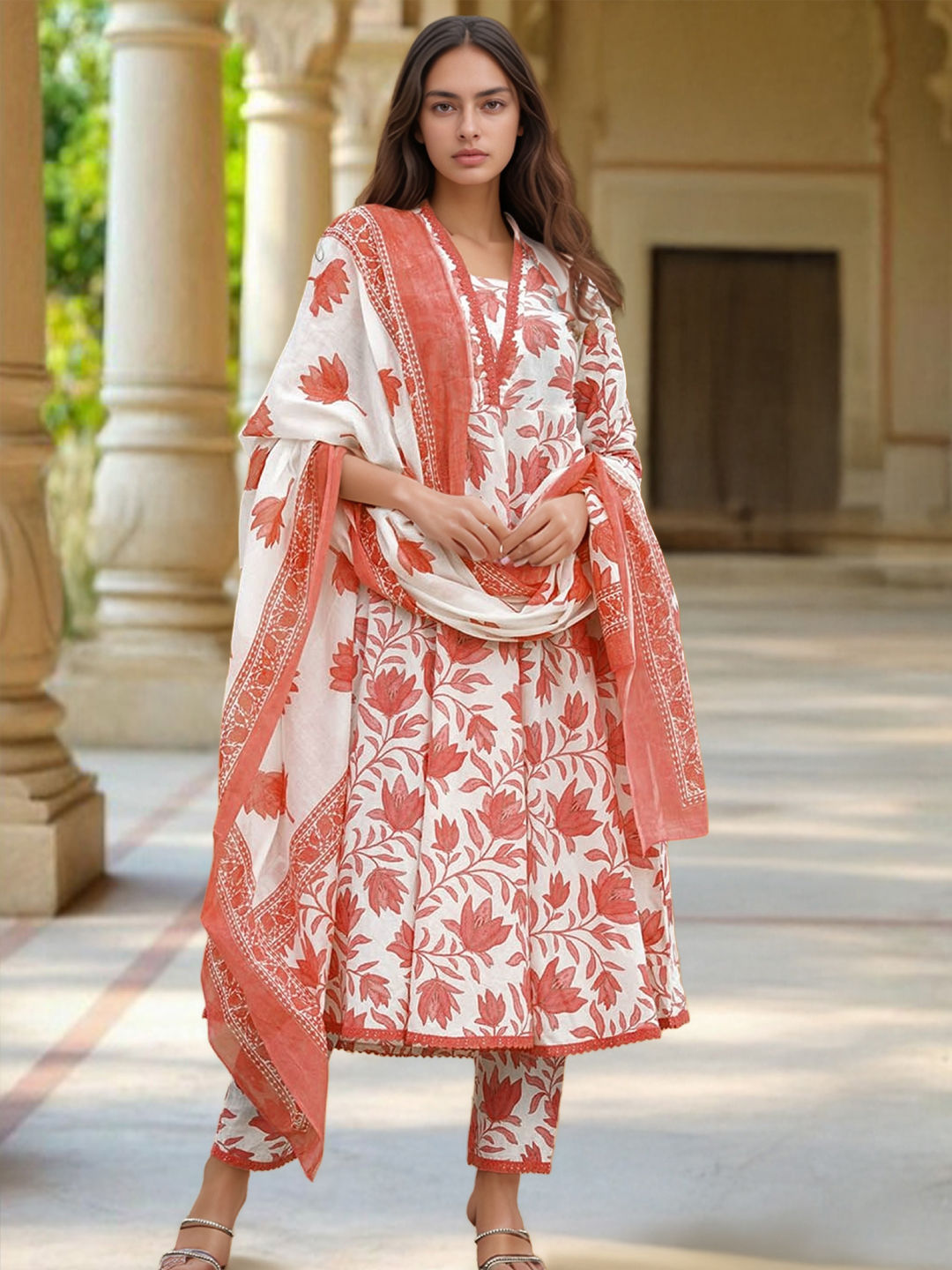 White and Off White color Salwar Kameez in Cotton fabric with Printed work