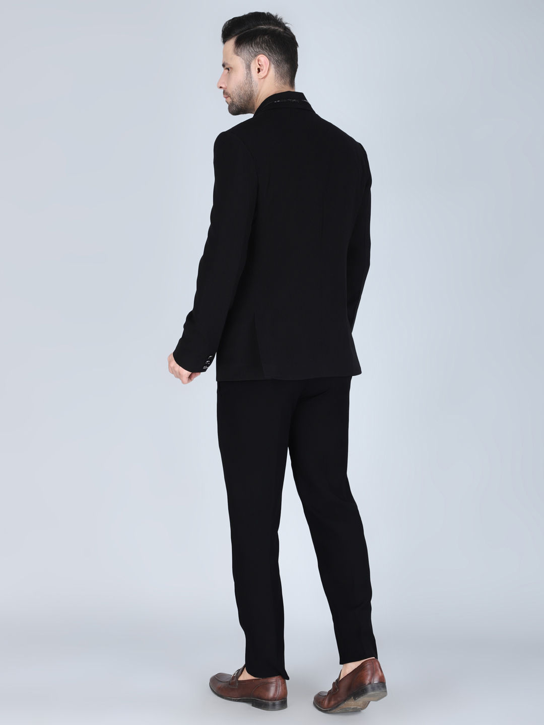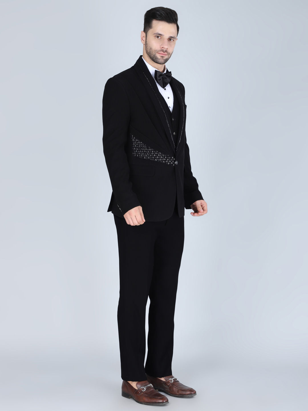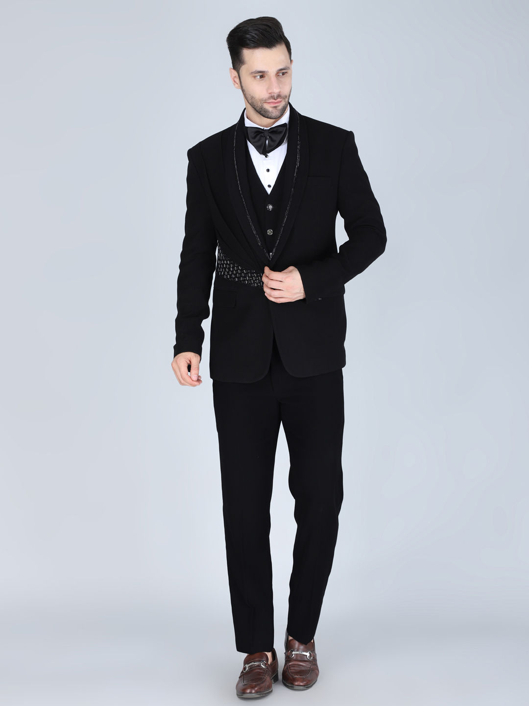 Black and Grey color Tuxedo in Cotton, Polyester Silk fabric with Embroidered work