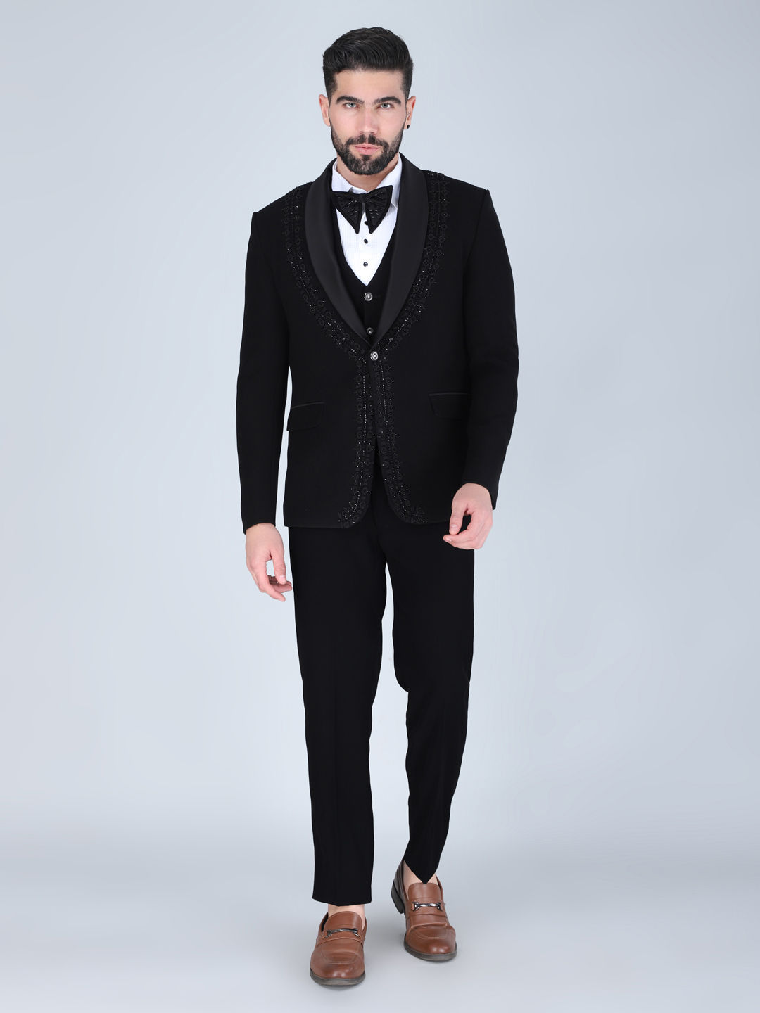 Cotton Reception Tuxedo in Black and Grey with Embroidered work