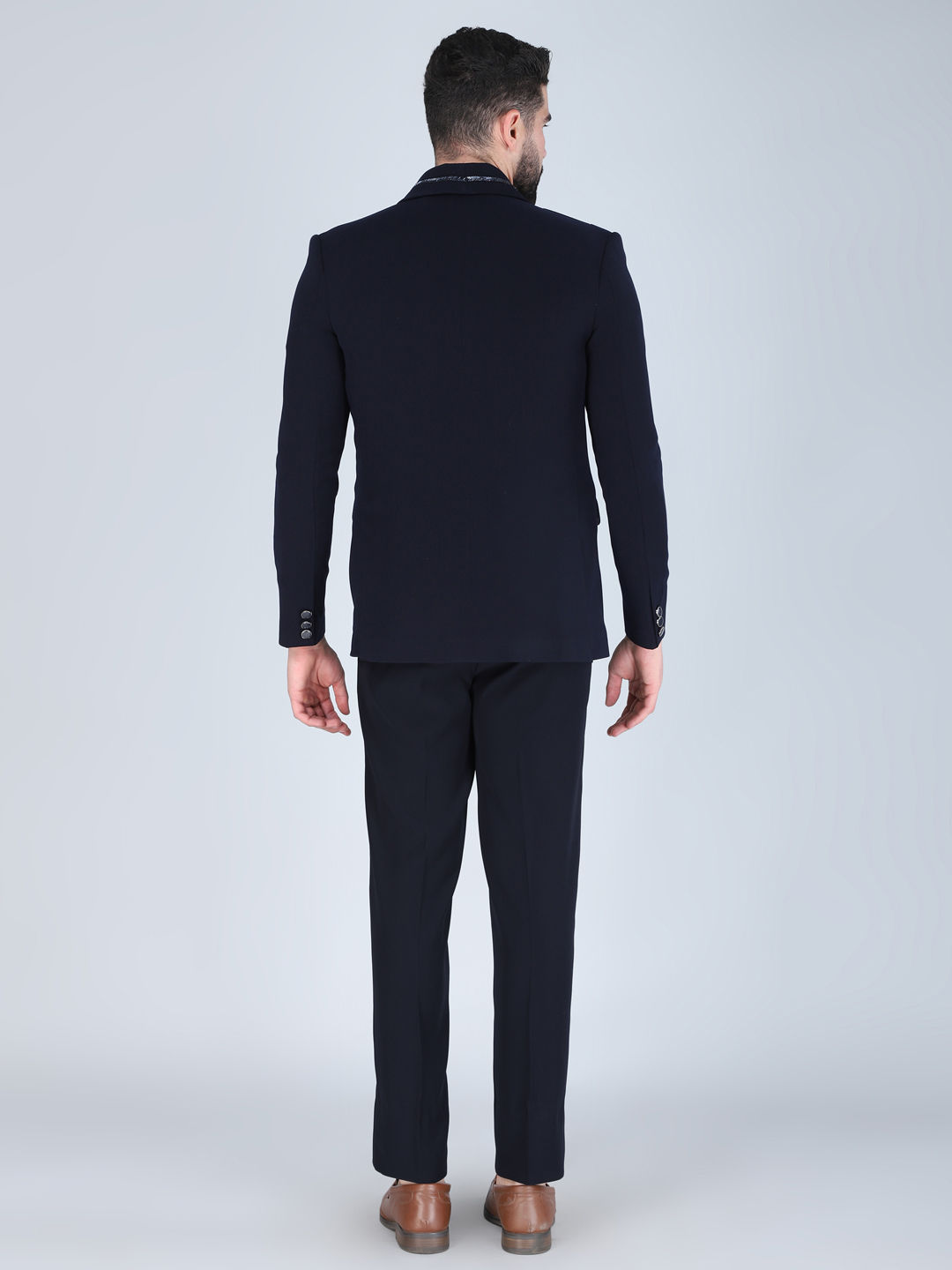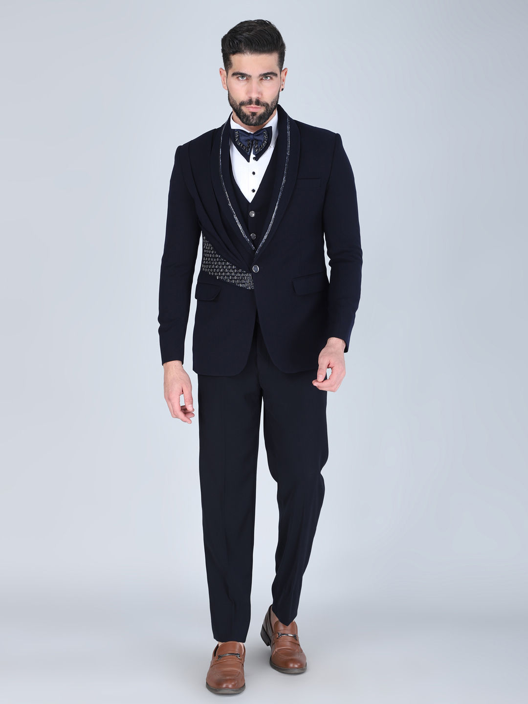 Cotton Reception Tuxedo in Blue with Embroidered work