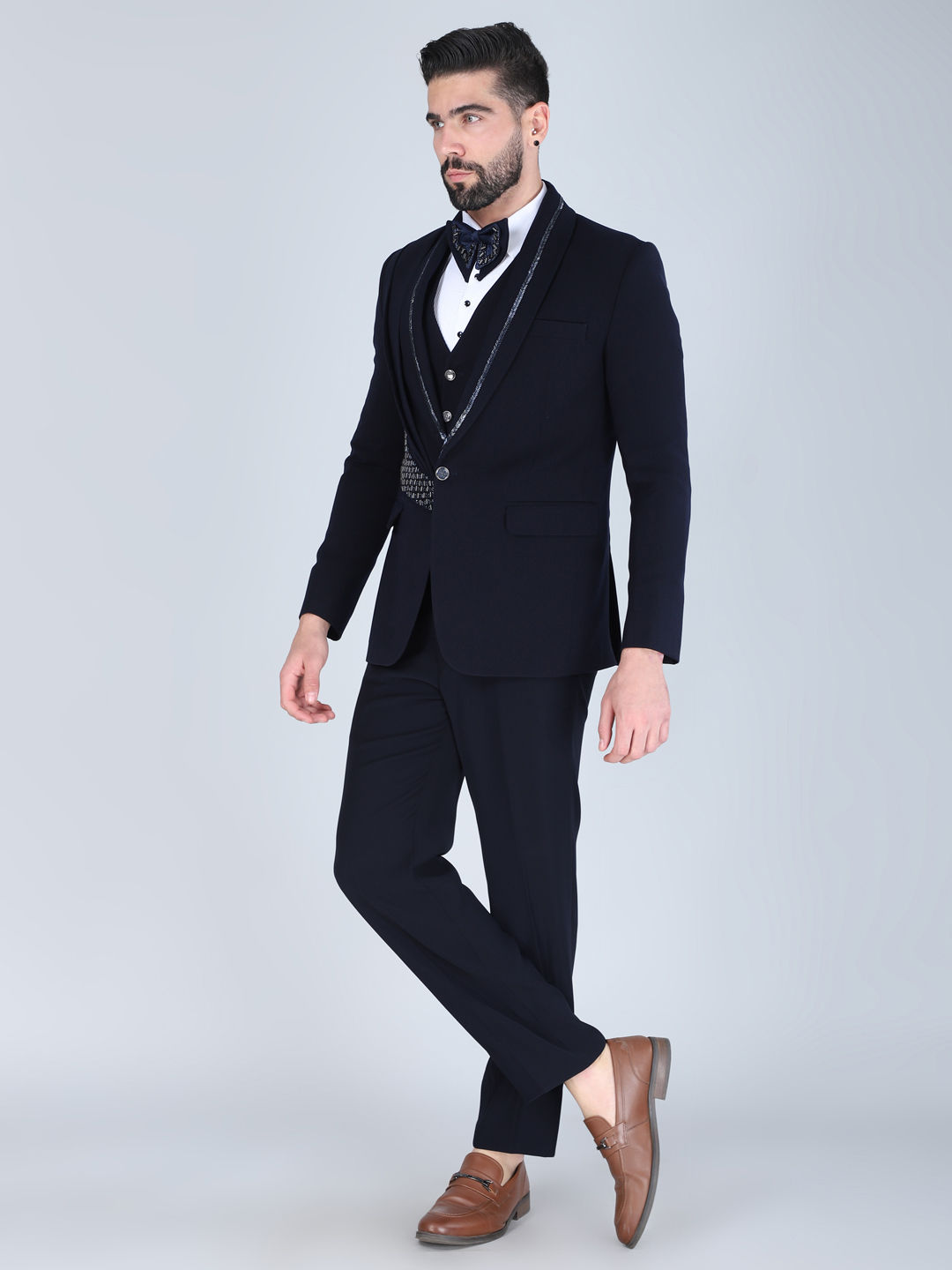 Velvet Wedding Tuxedo in Blue with Embroidered work