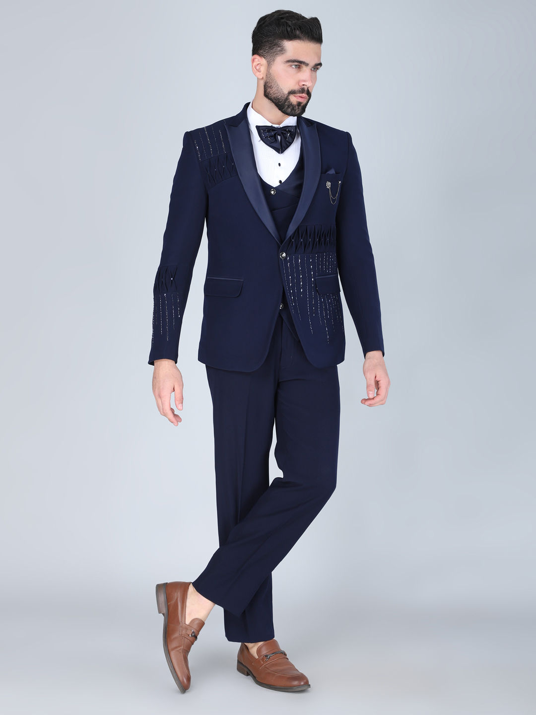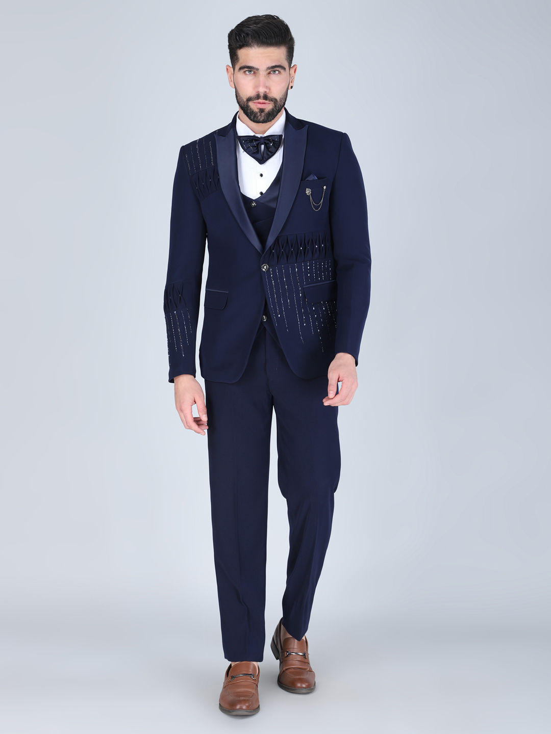 Cotton Reception Tuxedo in Blue with Embroidered work