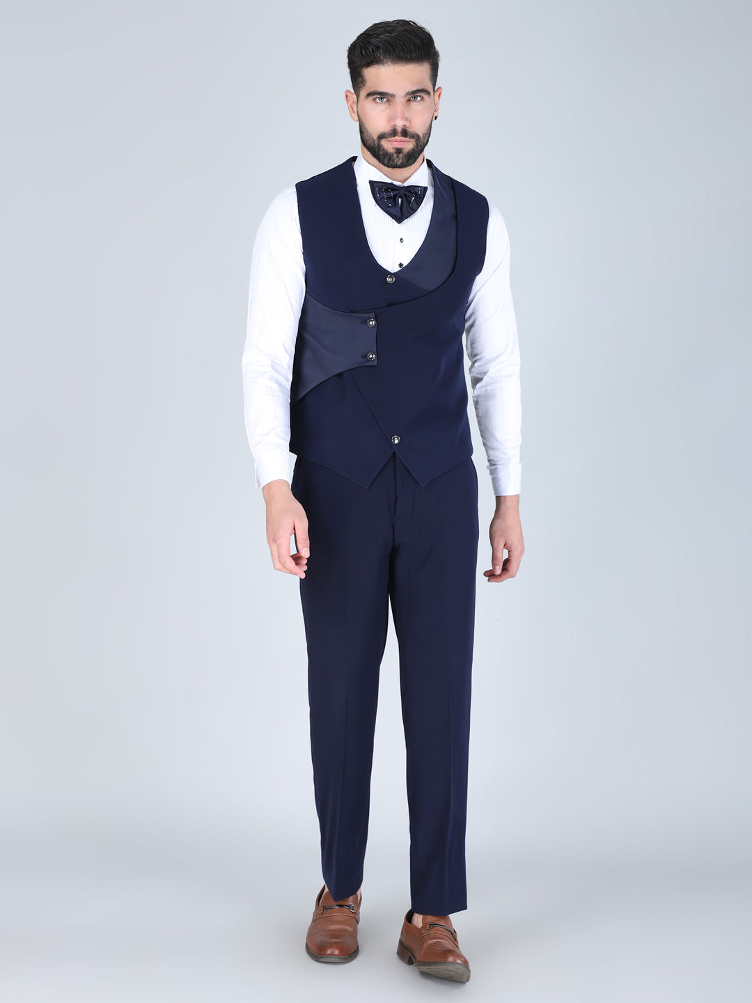 Velvet Wedding Tuxedo in Blue with Embroidered work