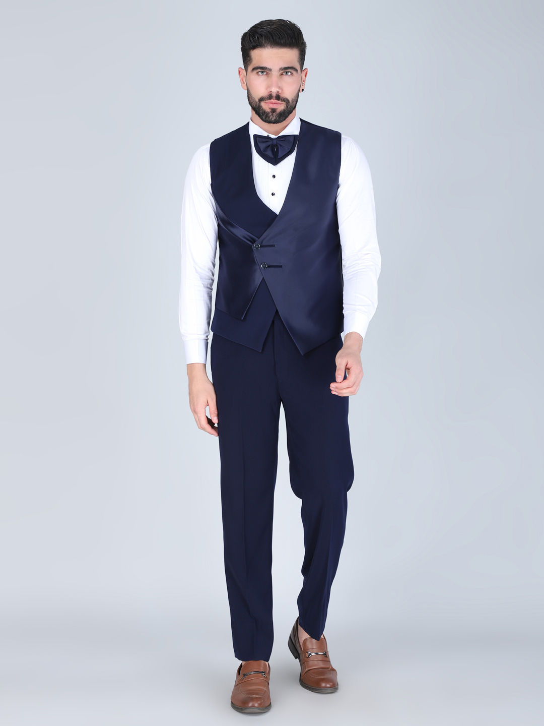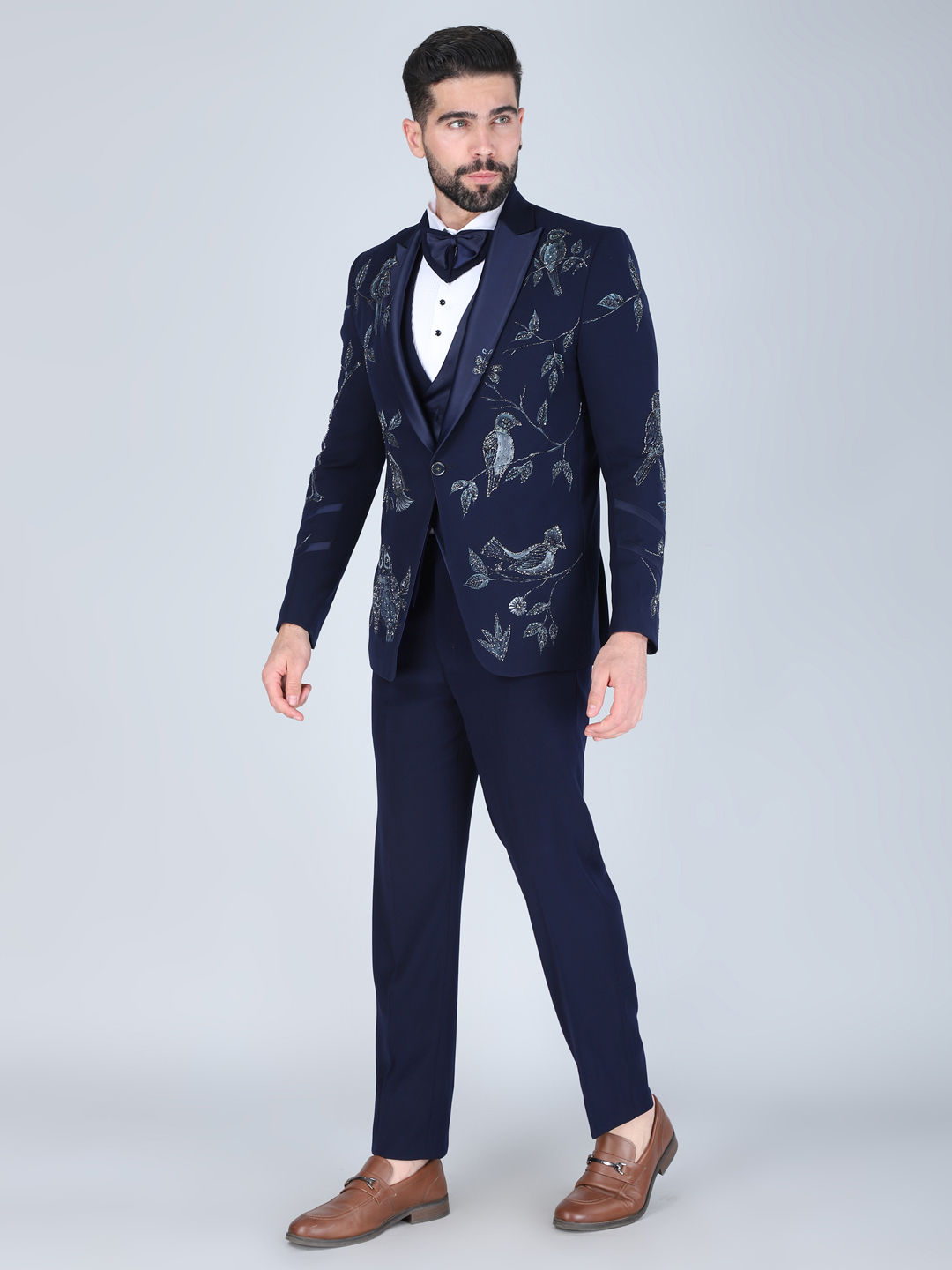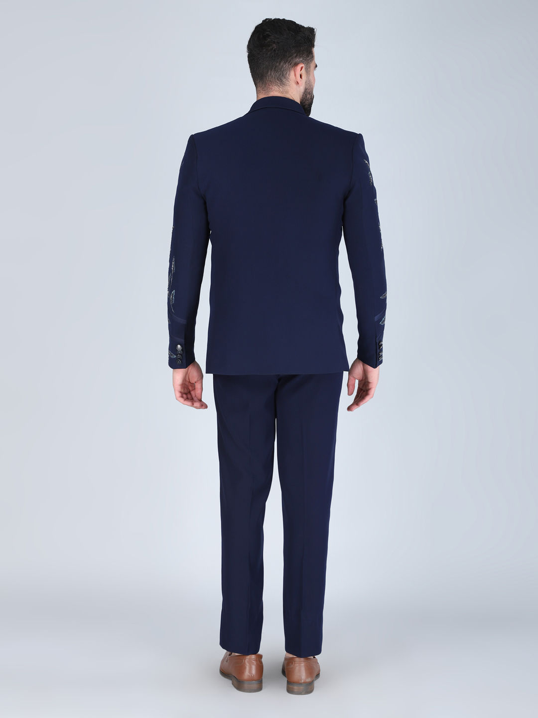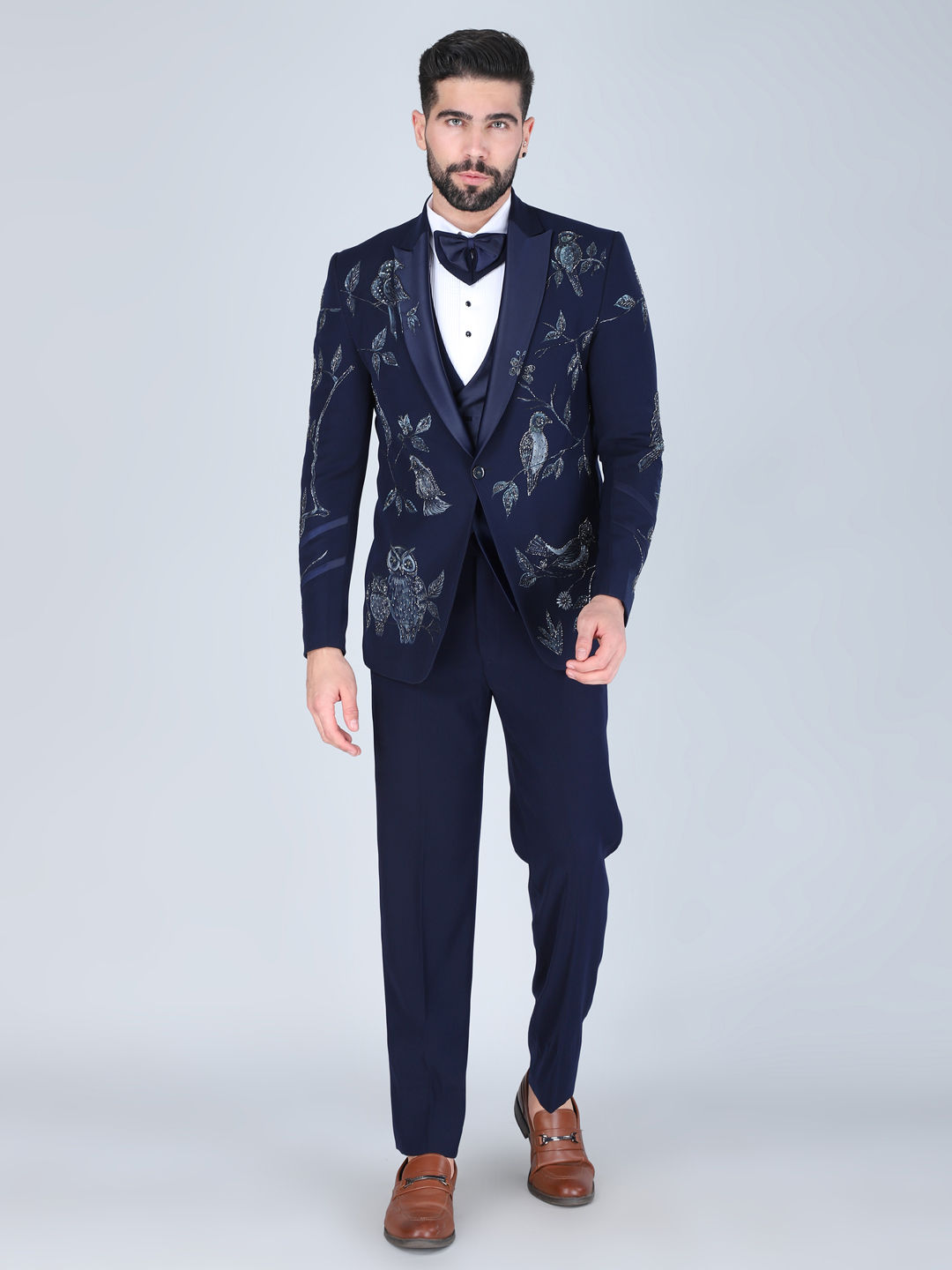 Cotton Reception Tuxedo in Blue with Embroidered work