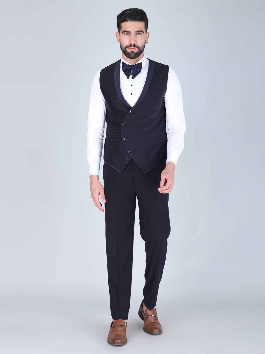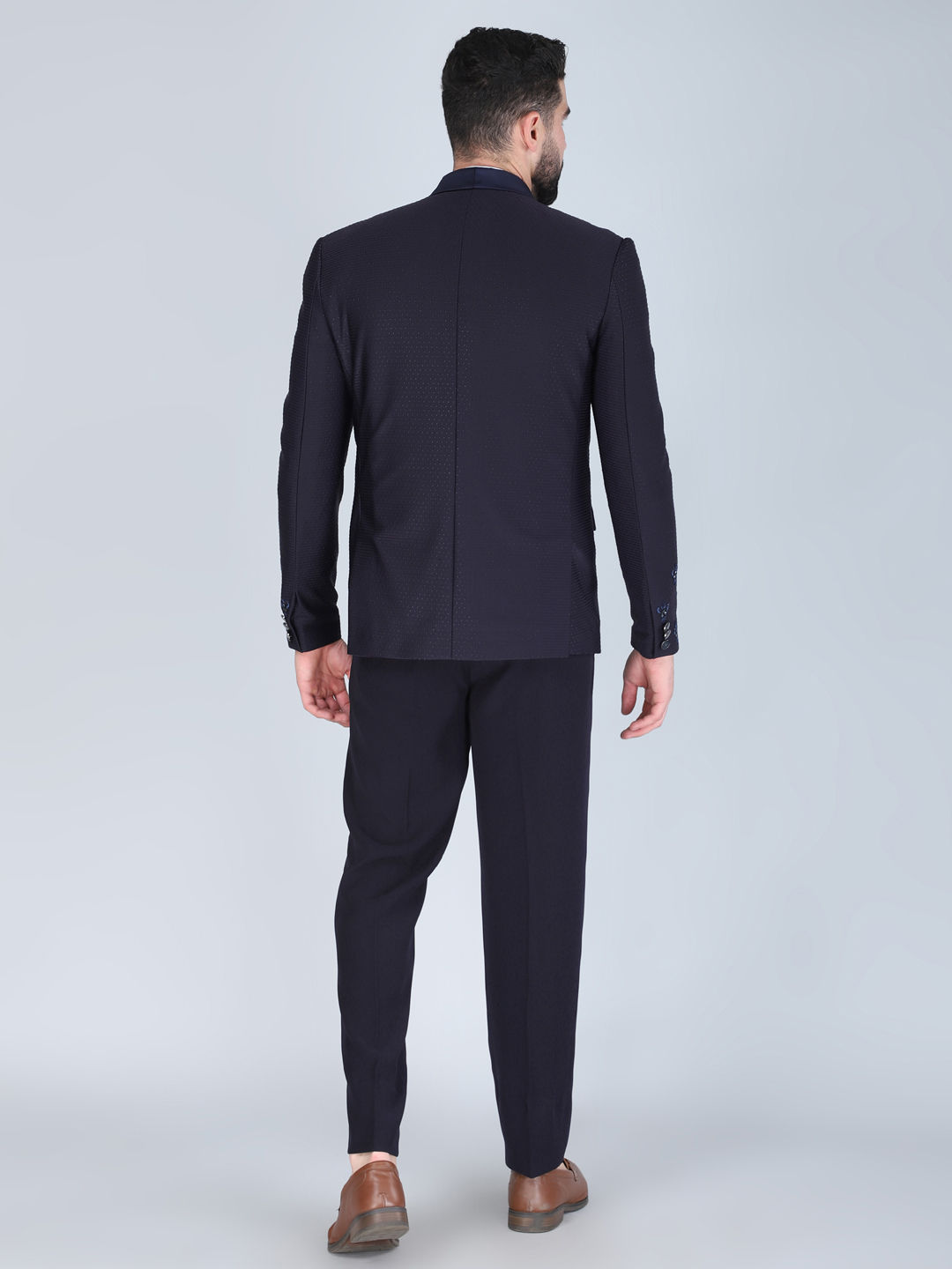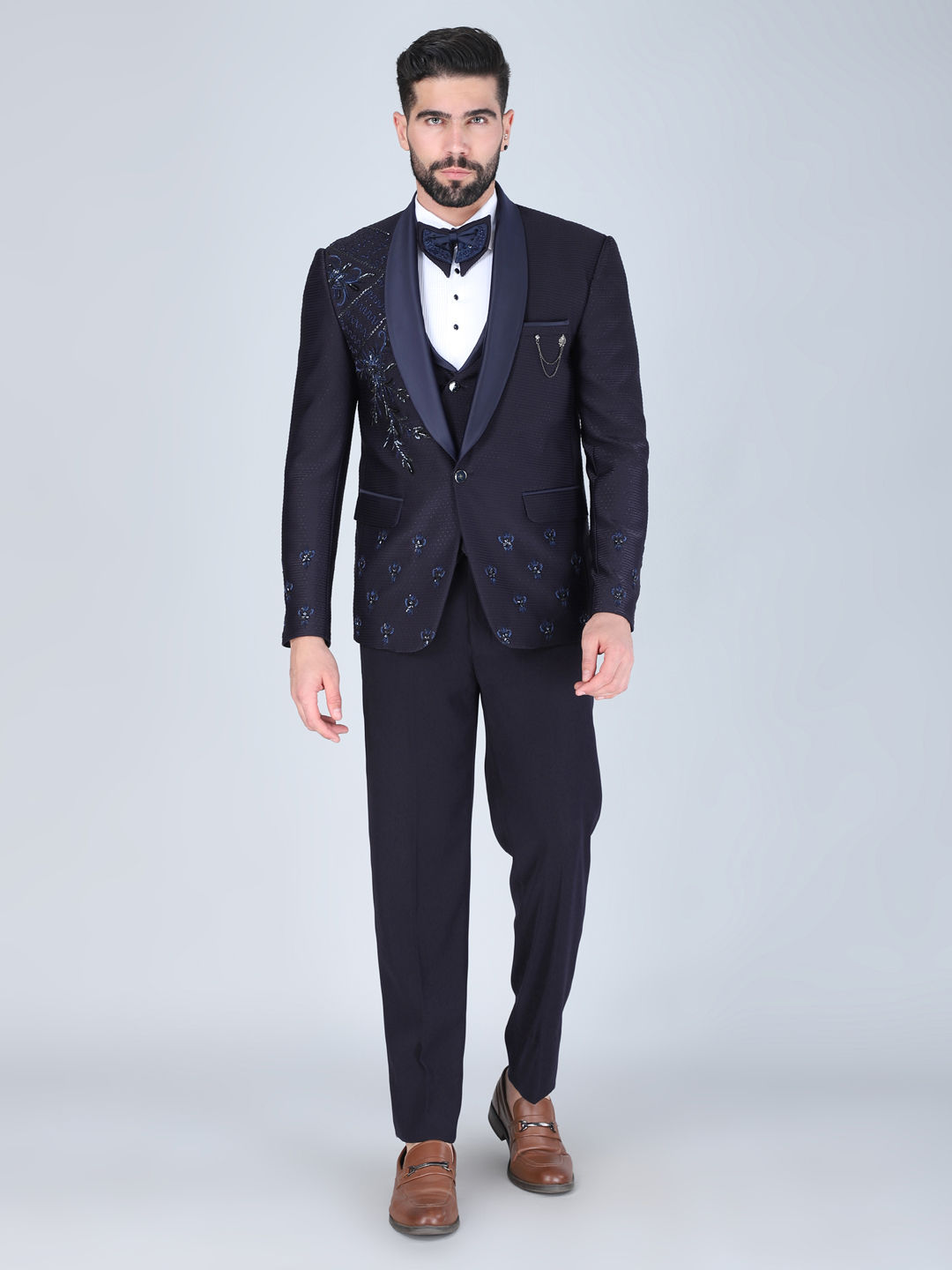 Cotton Reception Tuxedo in Blue with Embroidered work