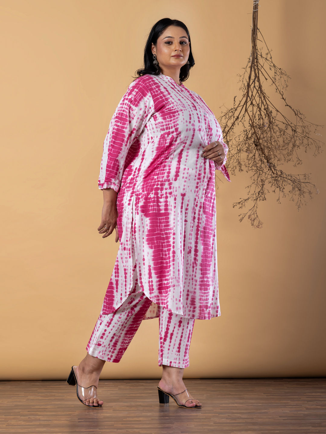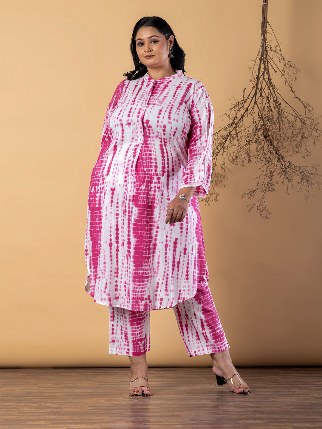 in Pink and Majenta with Printed work