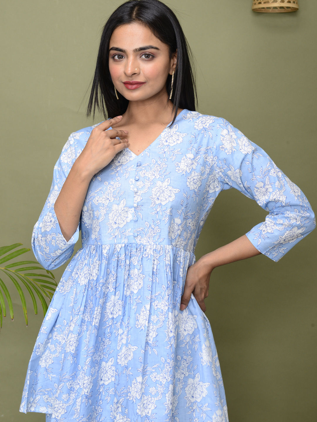 Blue color Co-ords Set in Cotton fabric with Floral, Printed work