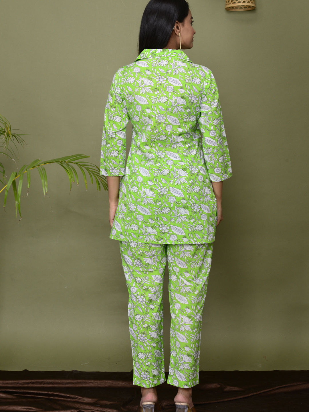 Green color Co-ords Set in Cotton fabric with Floral, Printed work