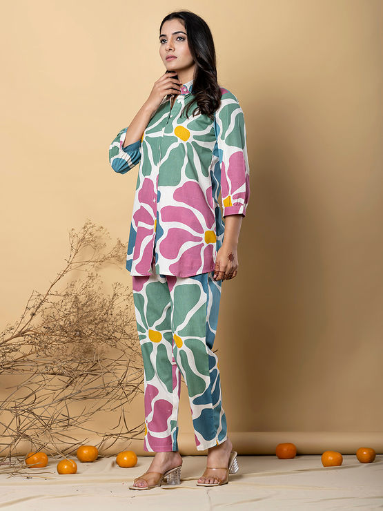 Multicolor color Co-ords Set in Cotton fabric with Printed work