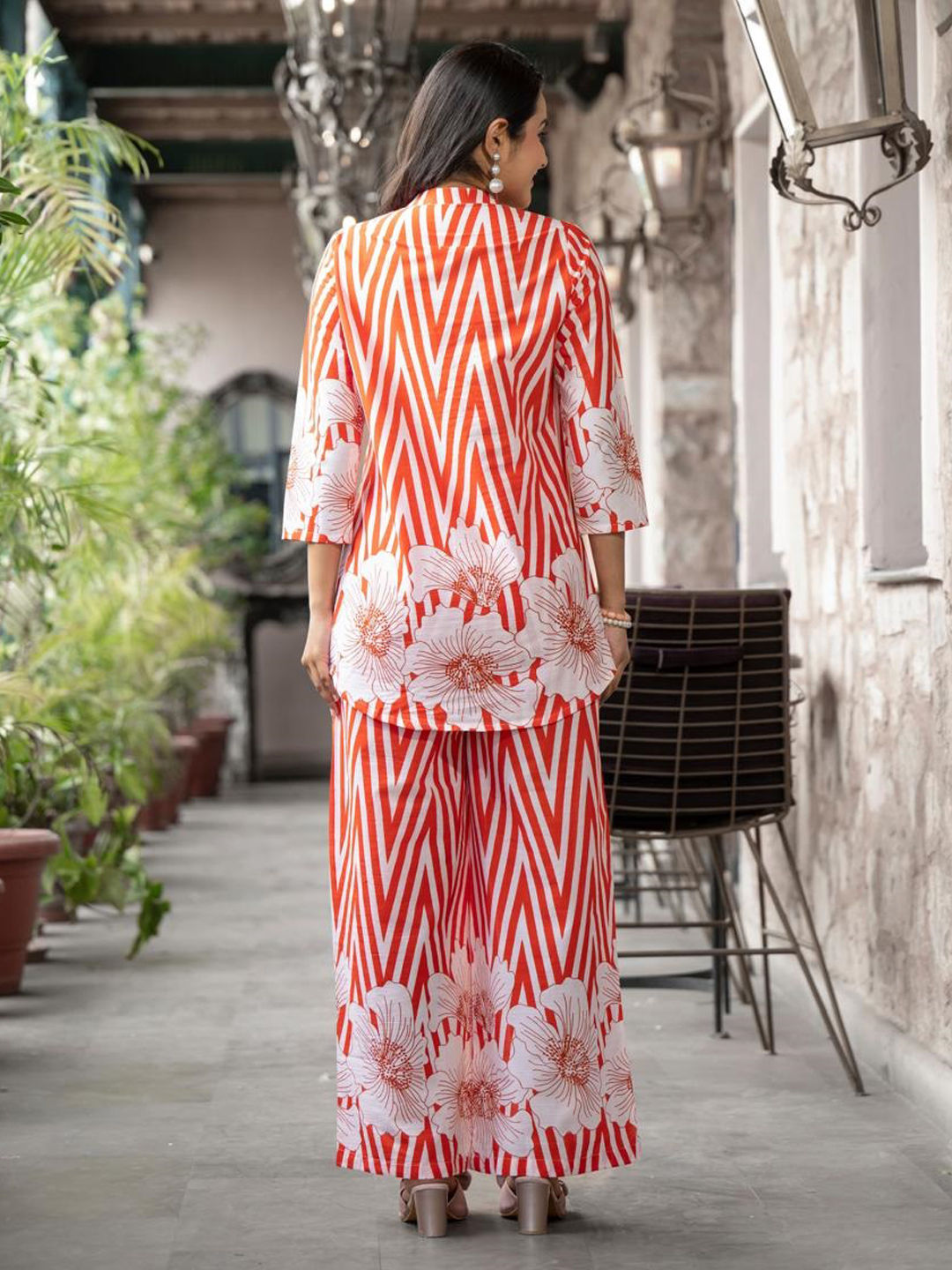 Orange color Co-ords Set in Cotton fabric with Printed work